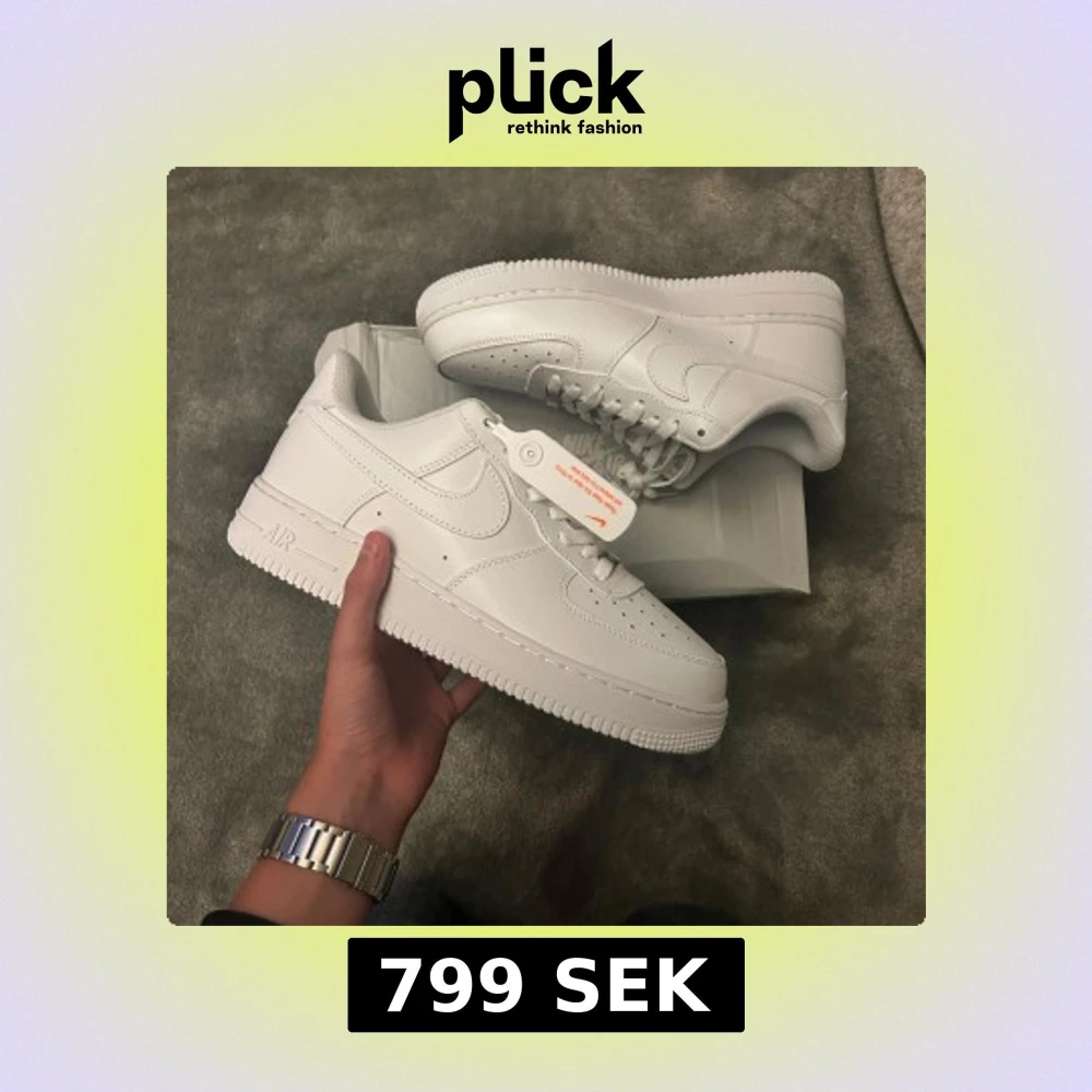 Nike Air Force 1 Low i helvitt skinn med klassisk rund tå och platt sula. Snygga detaljer som perforeringar på tån och ikonisk Swoosh-logga på sidan. Skorna har snörning och en clean look som alltid är on point. Perfekta för dig som gillar stilrena sneakers.
