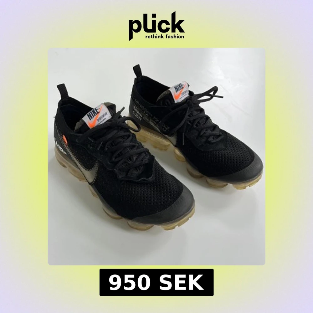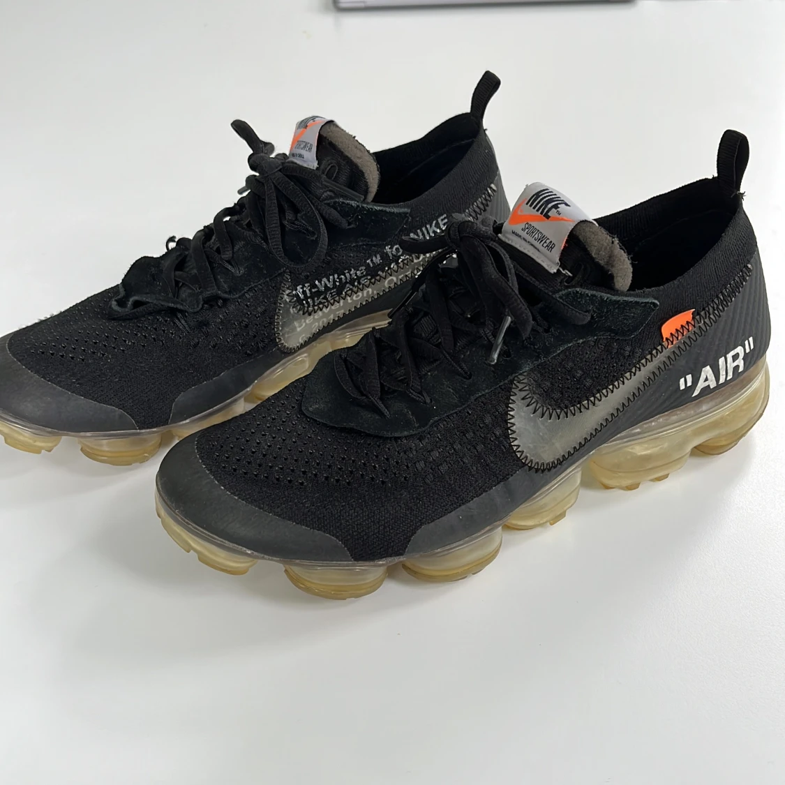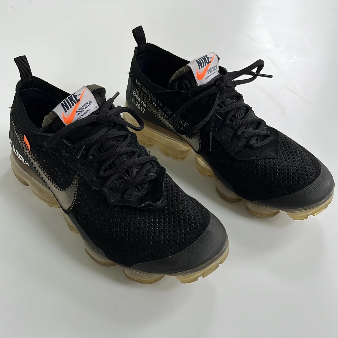 Svarta Nike x Off-White Vapormax i bra skick. En liten spricka i sulan men ingen som påverkar användningen.