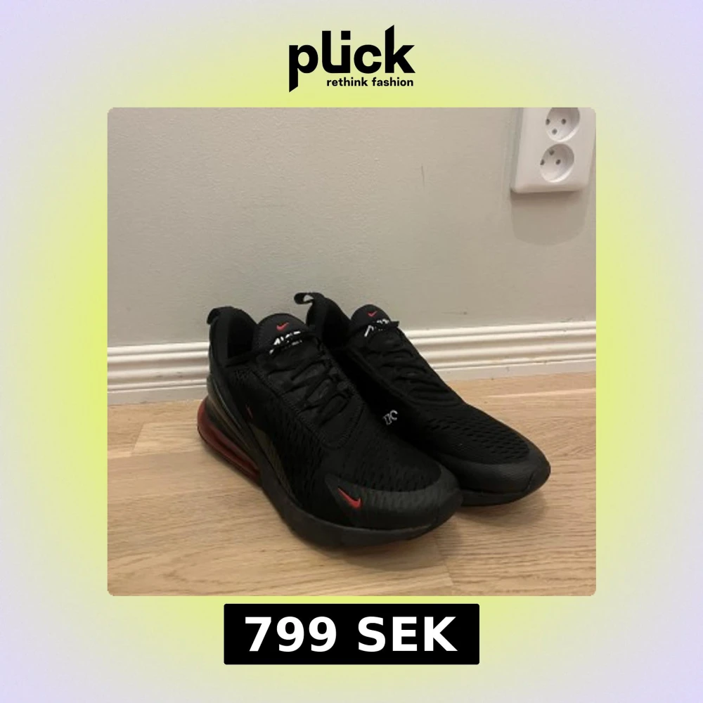 Här är ett par Nike air Max 270 som nästan är helt oanvända, skorna har bara stått hemma de senaste månaderna och är bara använda ute en gång. Finns inga täcken på användning förutom att lådan inte finns kvar. Mer bilder kan tas privat. Vill få sålt snabbt så priset är inte hugget i sten, vid snabb affär kan jag sänka mer. Mvh