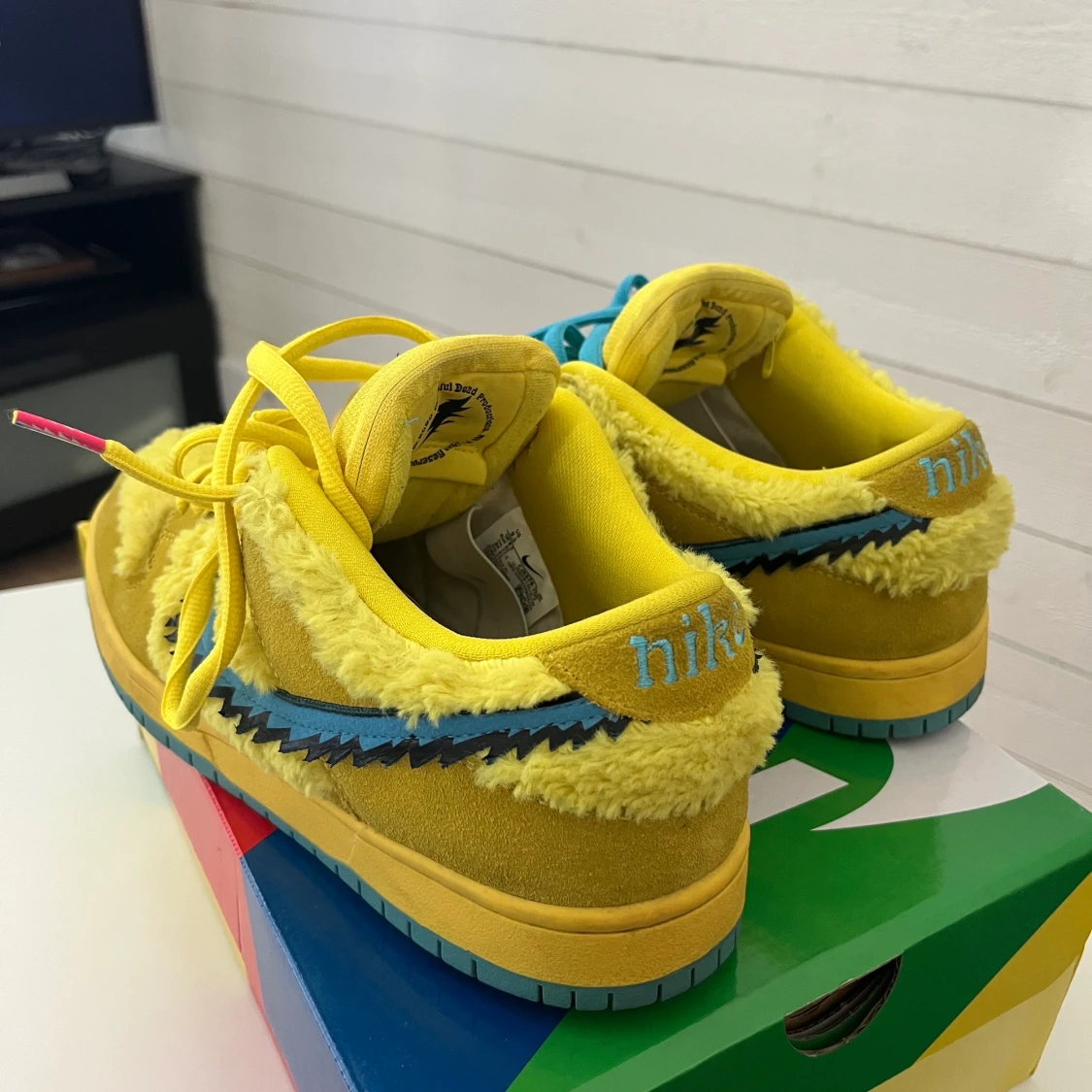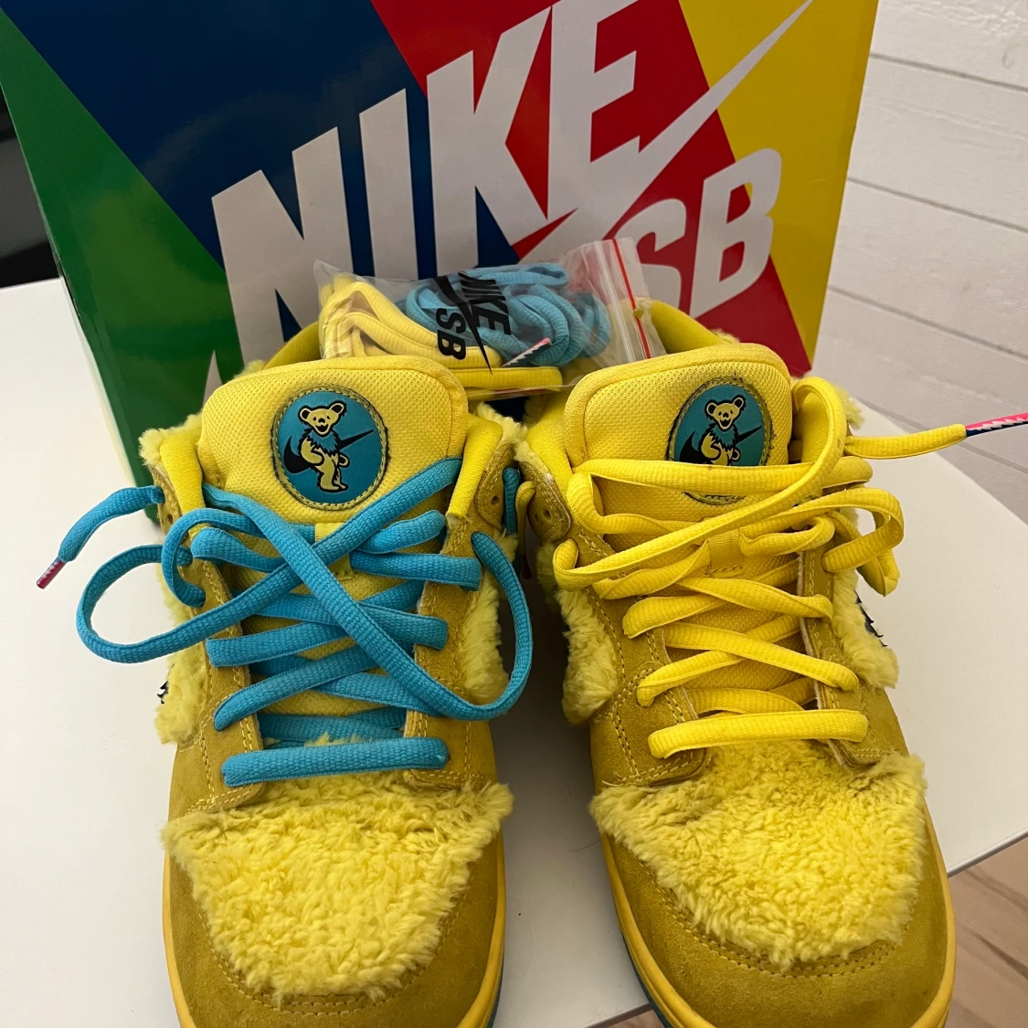 Nike SB dunk low grateful dead Yellow Dem är i storlek 43 och köpta från Vestiaire Dem har inga skador och väldigt sköna att ha och gå i, även väldigt coola! Box och snören medföljer
