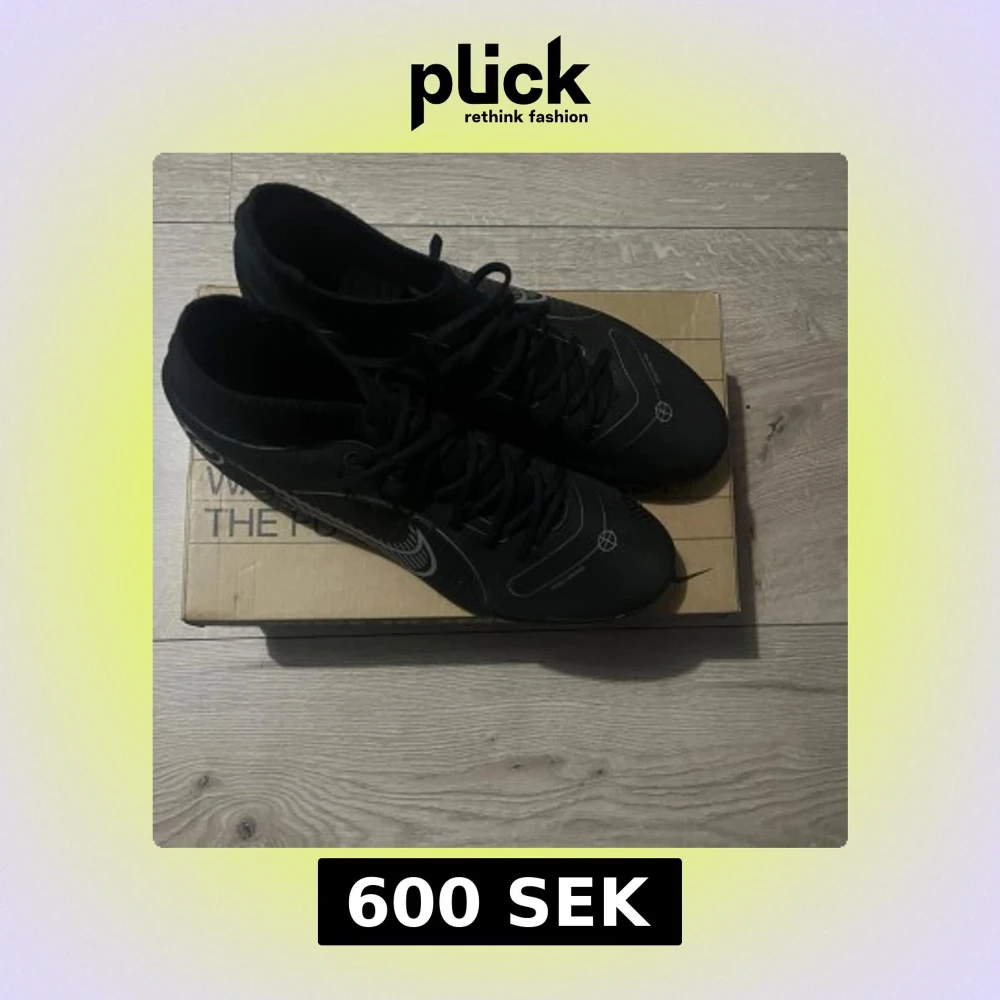 Snygga svarta Nike fotbollsskor med silverfärgade detaljer och loggor. Skorna har snörning, högre strumpliknande skaft och dobbar för bra grepp på planen. Tillverkade i syntetmaterial för lätt känsla och optimal prestanda. Perfekta för dig som vill sticka ut på fotbollsplanen.