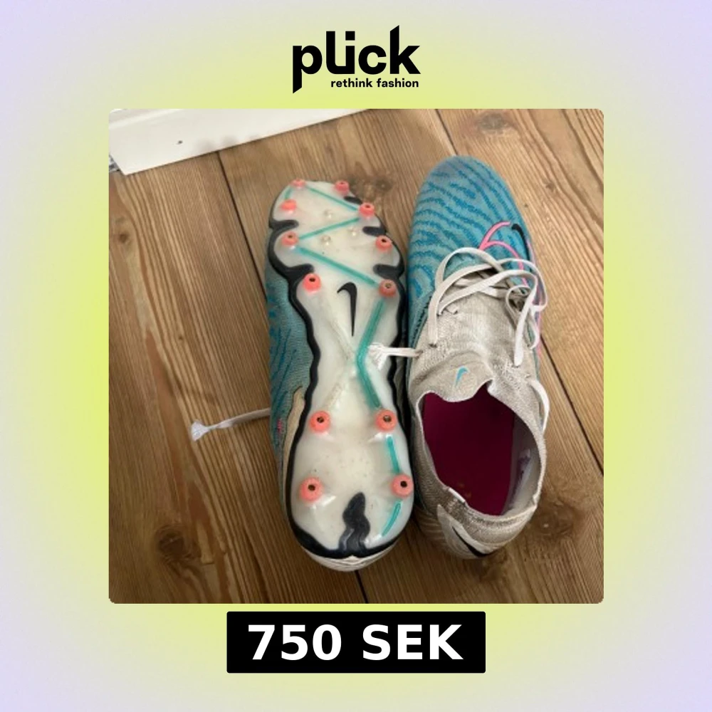 Snygga fotbollsskor från Nike med ett unikt blått och vitt mönster. Skorna har snörning och en rund tå, med rosa detaljer som ger en extra touch. Perfekta för fotbollsplanen med sina greppvänliga dobbar.