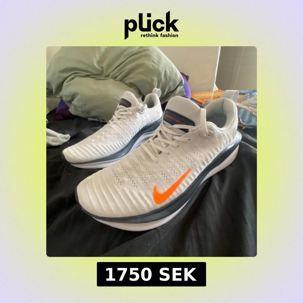 Nike React sneakers i vitt med en snygg orange swoosh på sidan. Ovandelen är stickad och ventilerande, med grå detaljer längs sulan och svart yttersula. Skorna har vart använda några gånger men säljer pga dom har blivit för små. Ny pris på de är 2000 Pris kan diskuteras.