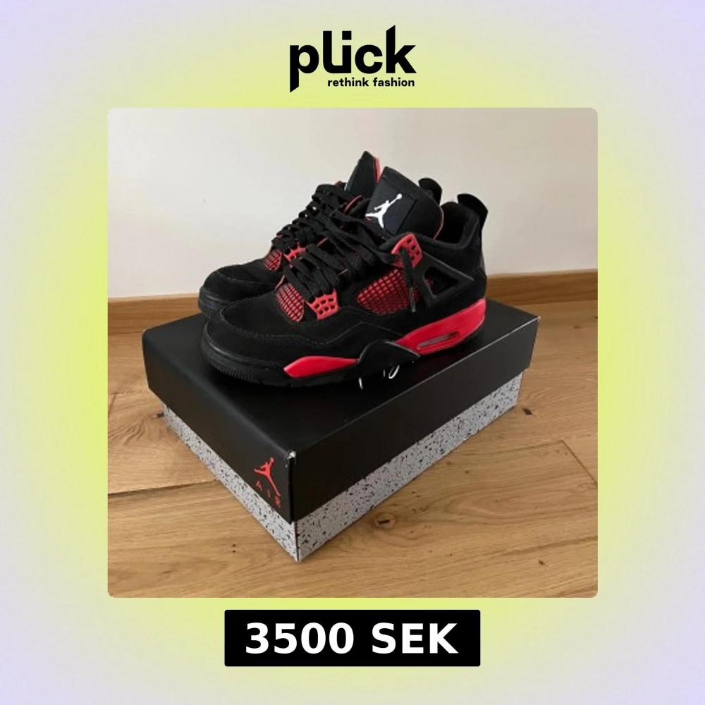 Säljer ett par Nike Air Jordan 4 Retro Red Thunder i strlk 44. Använda uppskattat 10 gånger i bra skick. Äkthets certifikat finns.