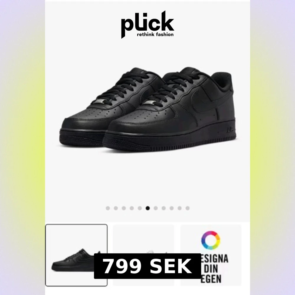 Klassiska Nike Air Force 1 '07 i helsvart skinn med låg profil och rund tå. Snygg och clean design med perforerade detaljer på tån, svart sula och ikonisk swoosh på sidorna. Perfekta för dig som gillar streetstyle och vill ha en tidlös sneaker.