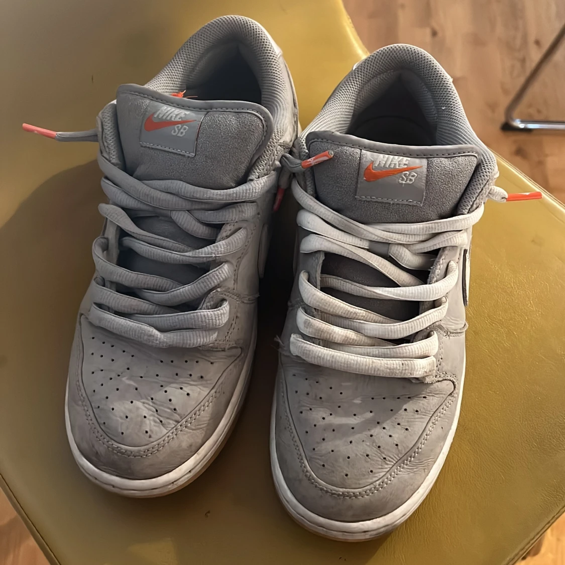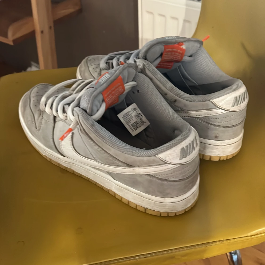 Hyffsat användna men inget mer än creases och smuts på dem annars är dem bra storlek 44 äkta✅ org låda och kvitto finns