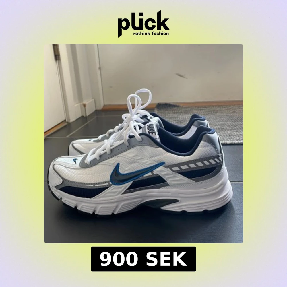 Snygga Nike sneakers i vitt med blå detaljer och en svart sula. Skorna har en klassisk snörning och en sportig design med Nike-loggan på sidan. Perfekta för en aktiv livsstil. Är helt nya men tyvärr för små , pris går att diskuteras och pris går att sänkas vid snabbt köp