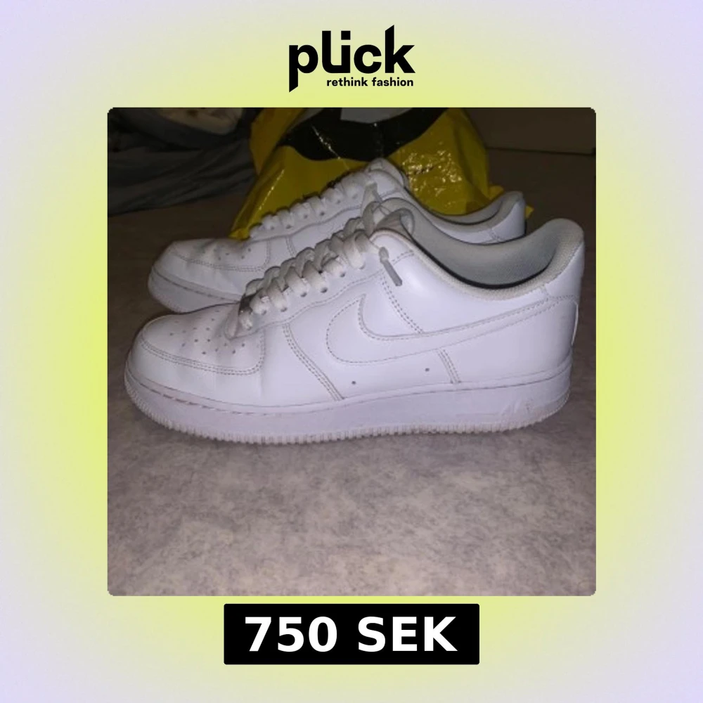 Säljer ett par klassiska vita Nike Air Force sneakers. Skorna har en stilren design med snörning och perforerade detaljer på ovansidan för ventilation. Perfekta för en avslappnad och trendig look. Dem är helt nya typ köpte från mos knappt använda.