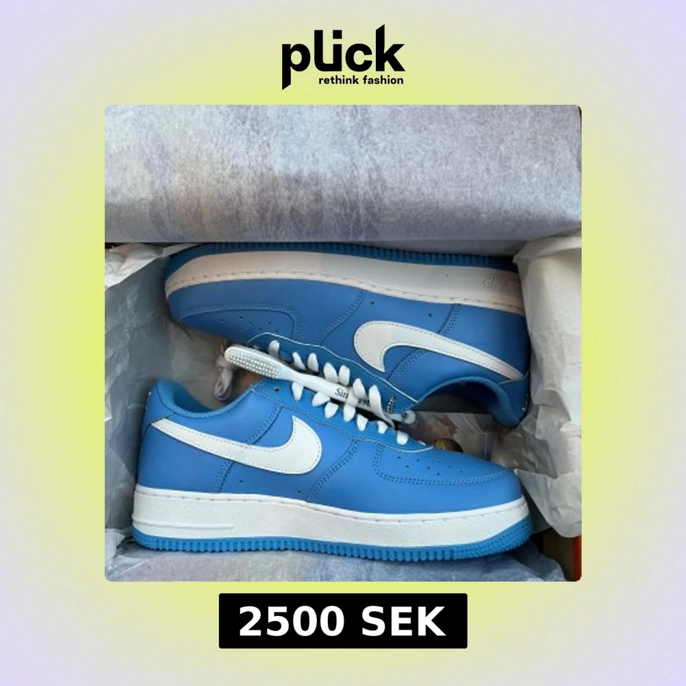 Säljer ett par Nike Air Force 1 sneakers i färgen university blue, aldrig använt helt nya från kartong, köpte de för 4 år sedan.