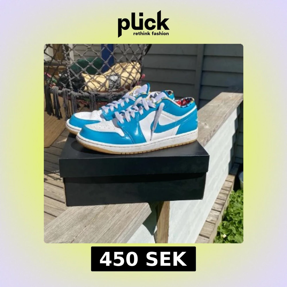 Säljer ett par Nike Air Jordan 1 low barcelona, skorna är i bra ändvänt skick, storlek 44, nypris 2500kr, box ingår, skriv vid frågor😁