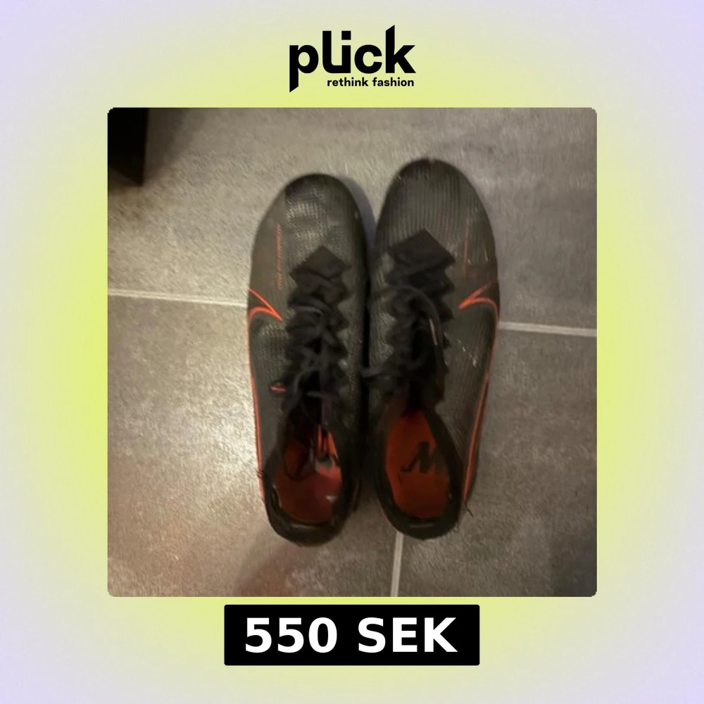 Säljer ett par svarta fotbollsskor från Nike med röda detaljer och snörning. Lite sönder sletna på enstaka ställen men går perfekt att spela i dem
