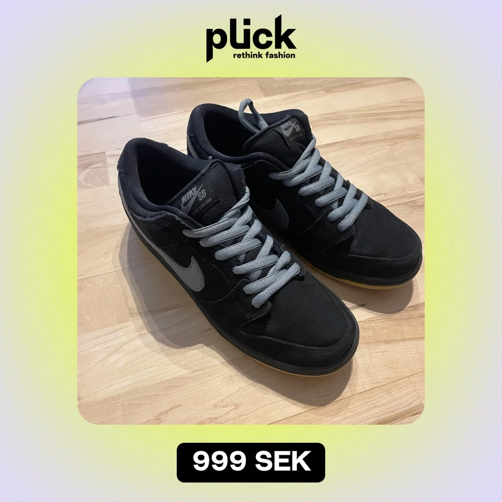 Säljer ett par Nike SB Dunk Low Pro i svart och grått. Skorna har en snygg design med grå snörning och en gummisula i gult. Perfekta för både vardag och skate. De är i mycket bra skick och kommer i originalförpackning. Skriv om ni har frågor eller funderingar! Pris ej hugget i sten!!