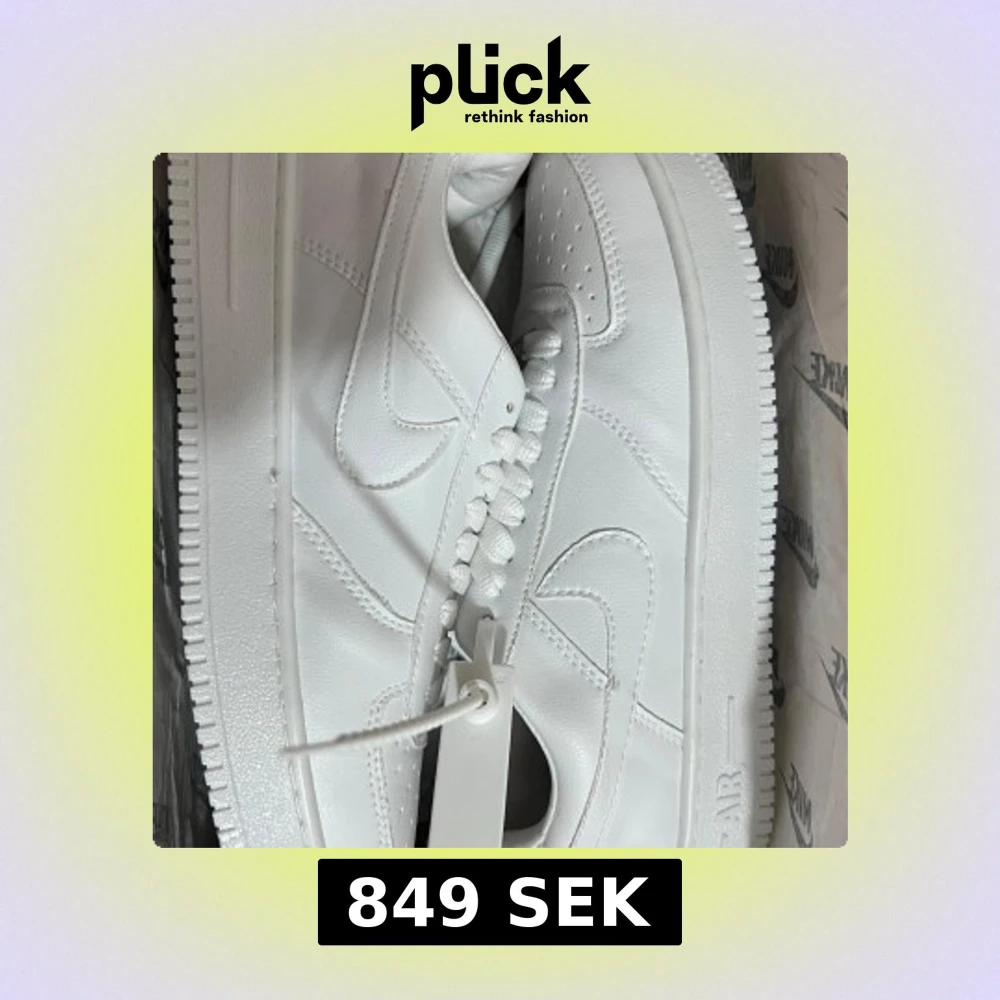 Nike Air Force 1 sneakers i helvitt skinn med klassisk siluett och perforerad tå. Snygga detaljer som metallbricka på snörningen och tydlig Nike-logga på sidan.
