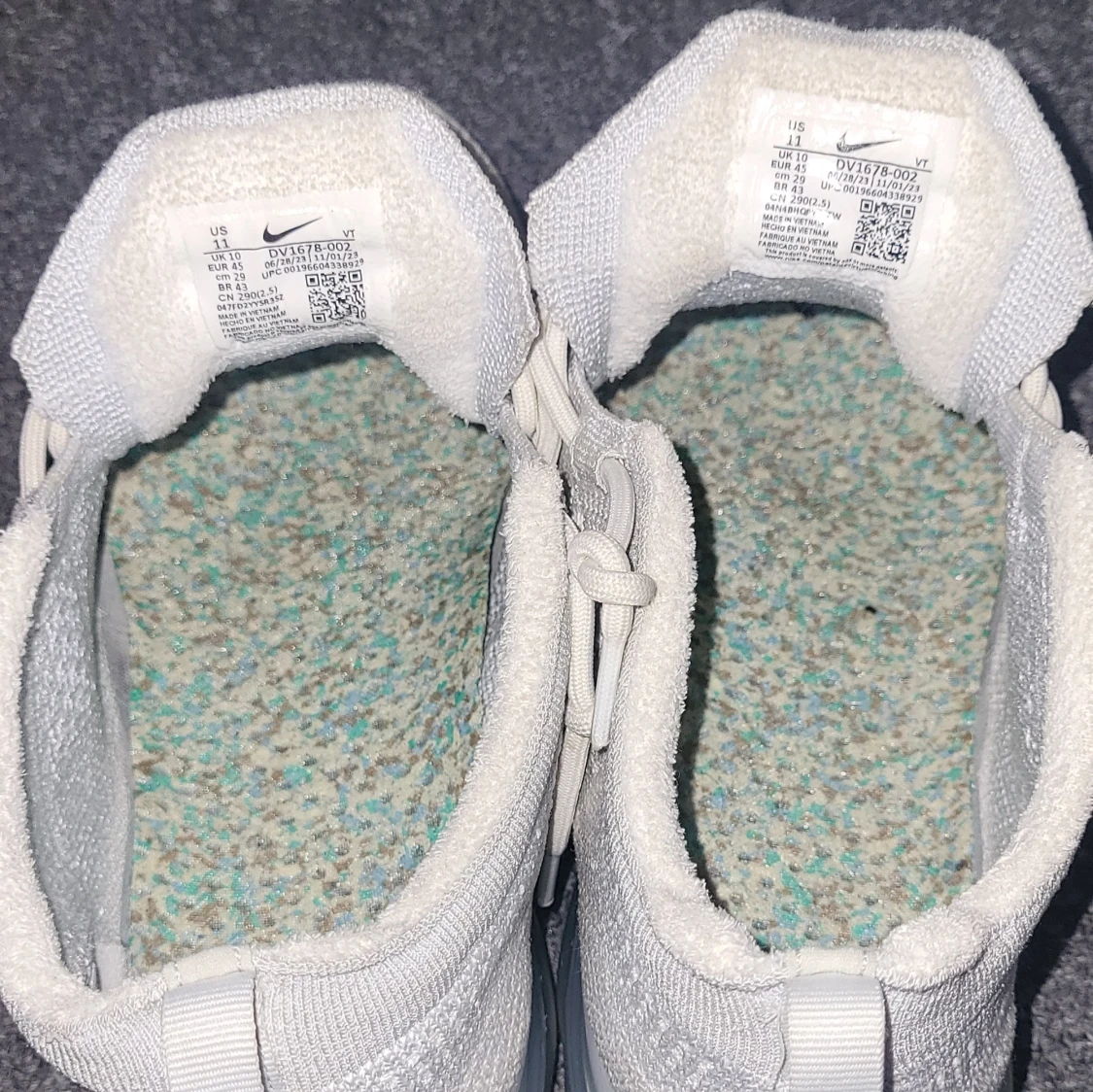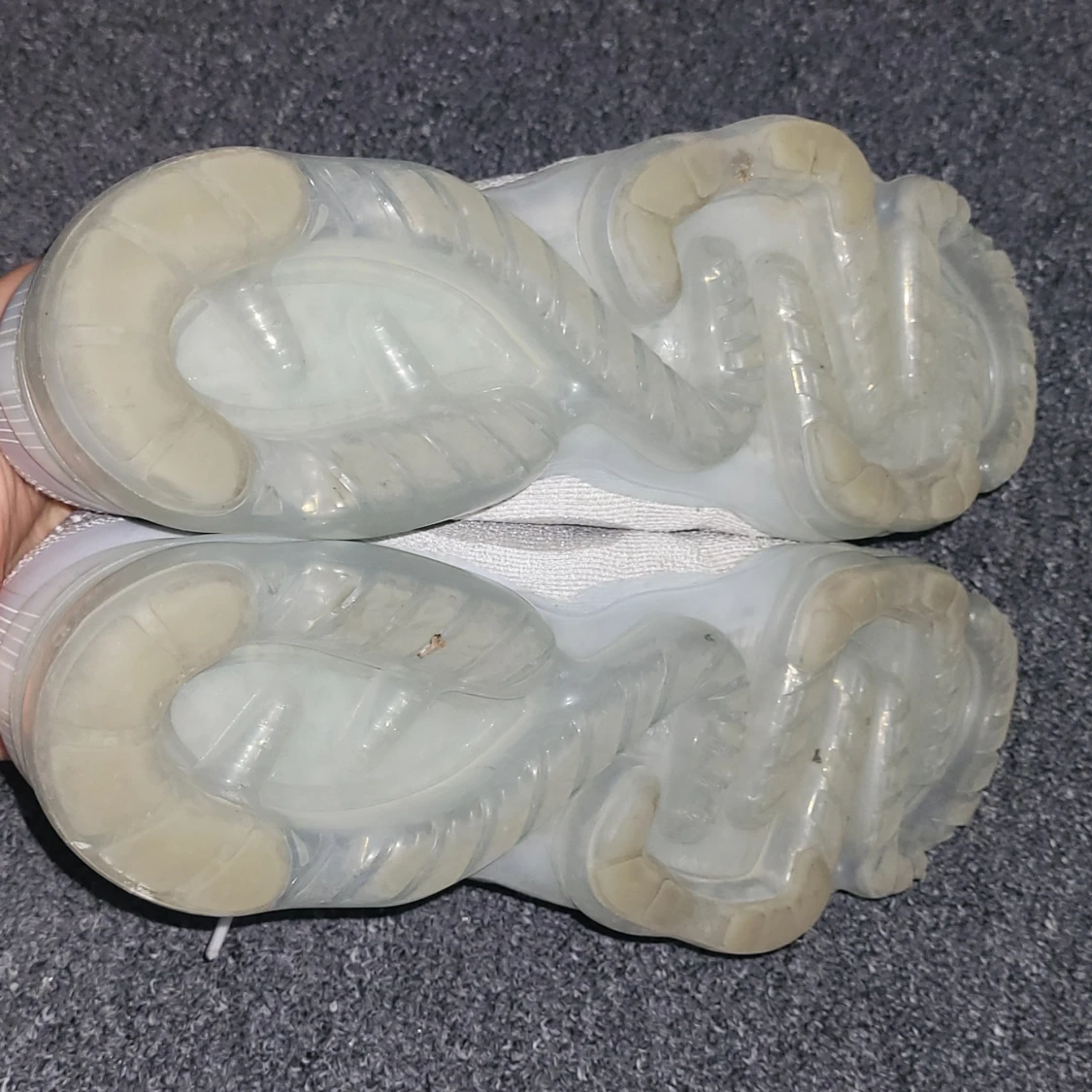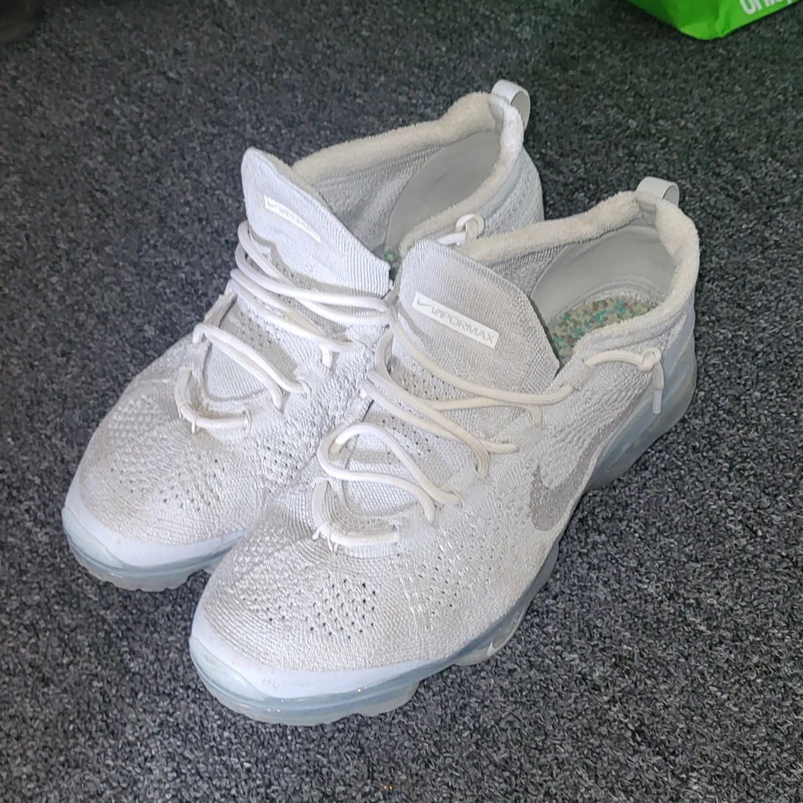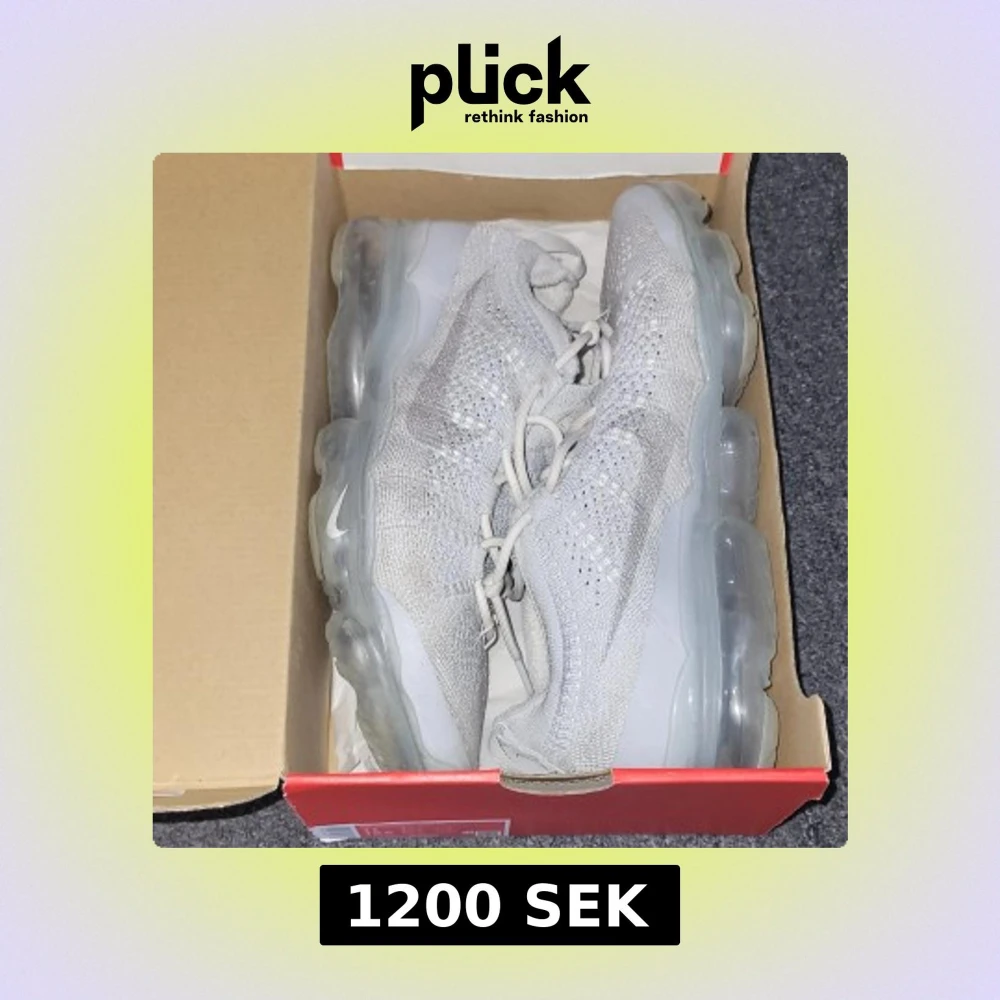 Nike Vapormax Flyknit sneakers i helvitt med stickad ovandel och genomskinlig, bubblig sula. Skorna har snörning och en sportig vibe, perfekt för dig som gillar streetstyle. Lätta och luftiga med modern design och diskret Swoosh på sidan.
