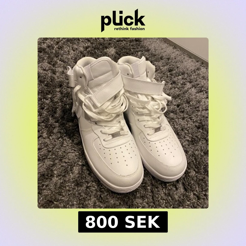 Säljer ett par klassiska vita Nike Air Force sneakers. Skorna har hög modell. Pris kan diskuteras. Helt oanvända