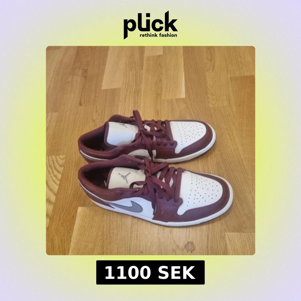 Nike Air Jordans i vinrött och grått - Säljer ett par snygga Nike Air Jordans i vinrött och grått. Skorna har en klassisk design med snörning och är i bra skick. Storlek 42,5 men passar både 42 och 43. Otroligt bra skick då jag bara använt dom 3-4 gånger. Pris går att diskuteras.