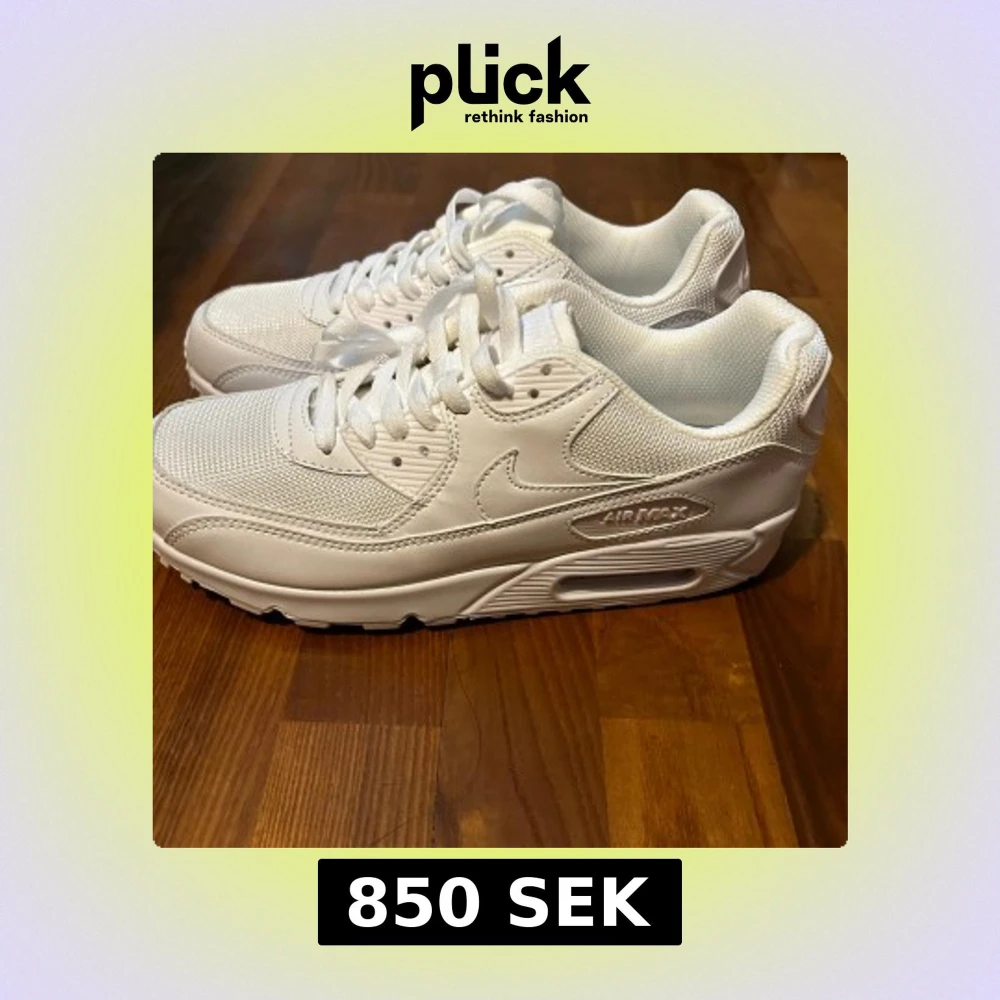 Du får mina andra skor för 150 om ni köper dessa)/skickar dessa med de andra. Nike Air Max 90 i helvitt med klassisk chunky sula och synlig Air-enhet. Ovandel i mesh och syntet med snygga detaljer och broderad Swoosh. Perfekta sneakers för dig som gillar en clean och sportig look. Levereras i originalkartong.