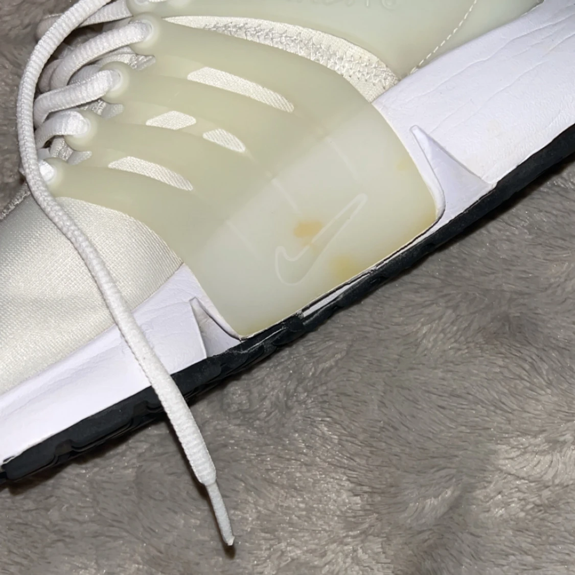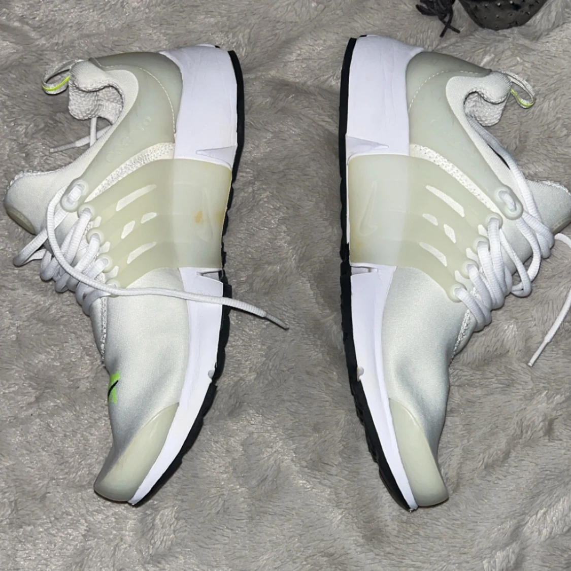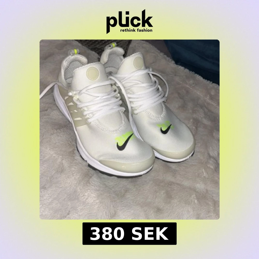 Nike Presto sneakers i vitt, väldigt bra skick förutom små oranga fläckar (se bilder) går säkert att tvätta bort, har en tagit mig tiden att försöka. Skicka meddelande för fler bilder. Priset är inte oförhandligsbart!