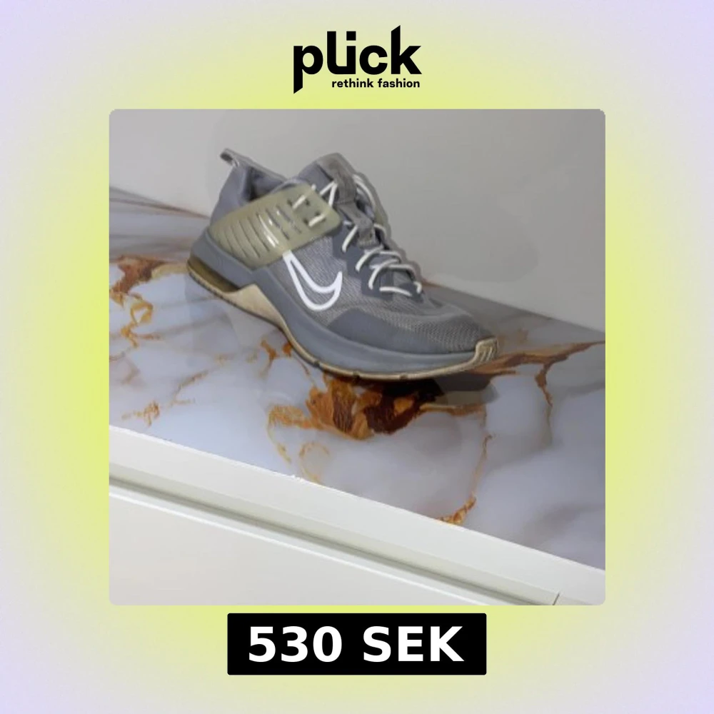 Snygga grå Nike sneakers med vit swoosh på sidan och ljusgrå detaljer. Skorna har snörning och en robust platt sula med transparent sektion vid hälen. Ovandelen är i syntetmaterial och mesh för bra ventilation. Perfekt för dig som gillar sportig stil. Men är lite taita så skulle säga de också passar storlek 44-45.