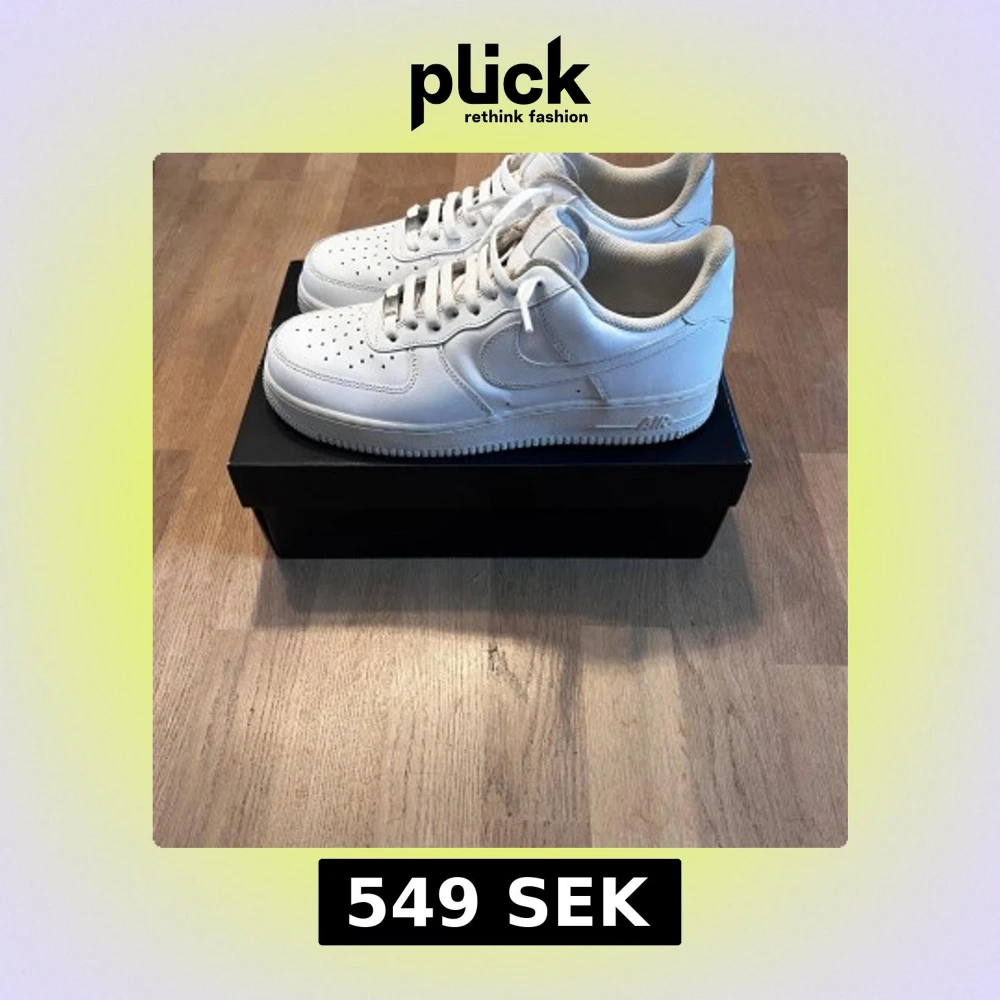 Klassiska Nike Air Force 1 sneakers i helvitt. Perfekta för dig som gillar en clean och stilren look till höst och vinter 🍁. 9/10 skick ✅ Skickar inom 48 timmar 🚚 Priset är förhandlingsbart 👍