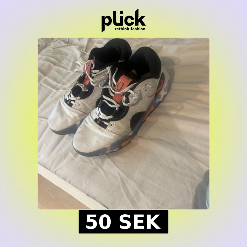 Snygga Nike React sneakers med futuristisk design i silver, svart och orange detaljer. Skorna har vit snörning, rund tå och en unik sula med camo-liknande mönster. Perfekta för dig som gillar streetstyle och vill sticka ut.