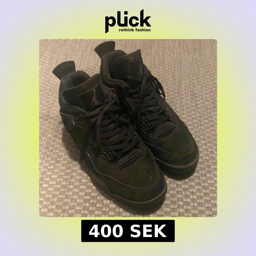 Säljer ett par helsvarta Nike Air Jordans sneakers med klassisk siluett och snörning. Skorna har rund tå och platt sula, tillverkade i mocka och syntetmaterial. Perfekta för dig som gillar streetwear och vill ha en stilren look. black cats inte äkta men ser äkta ut, dom görs rent innan dom blir sålda