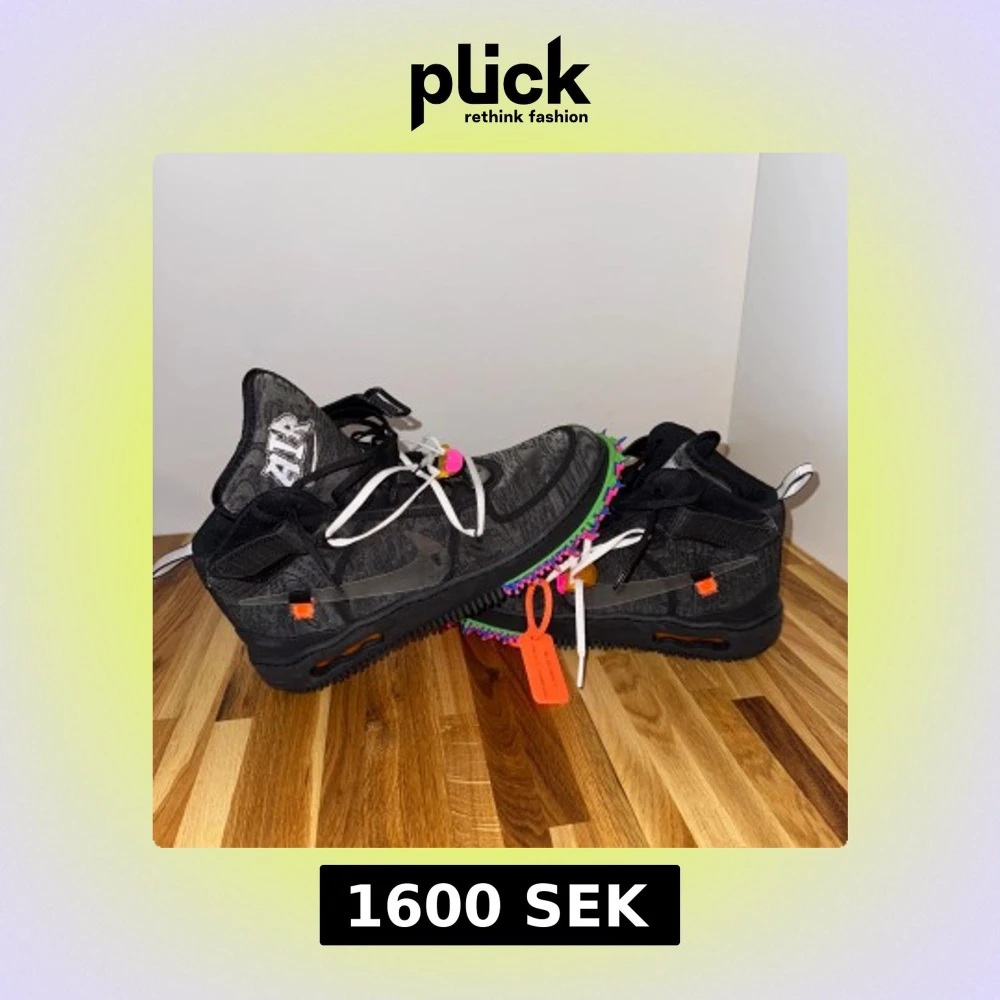 Unika Nike Air Force 1 x Off-White i svart med coola detaljer som färgglada taggar på sulan, vita och svarta snören samt genomskinlig swoosh. Skorna har broderad AIR-logga på plösen och orange detaljer. Perfekt för dig som vill sticka ut.
