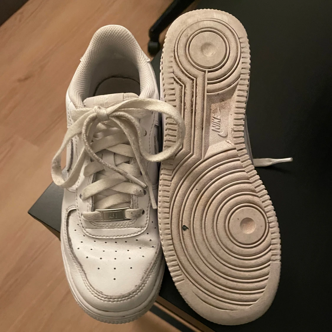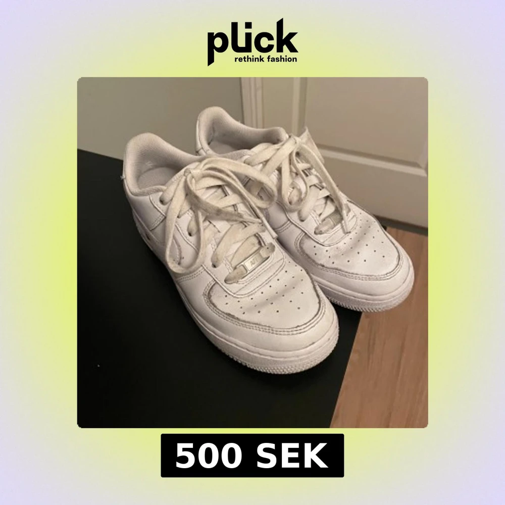 Klassiska Nike Air Force 1 som är i bra skick har använts några gånger. Det är storlek 37.5 men kommer passa de som har 37 och de har inga hål eller liknande