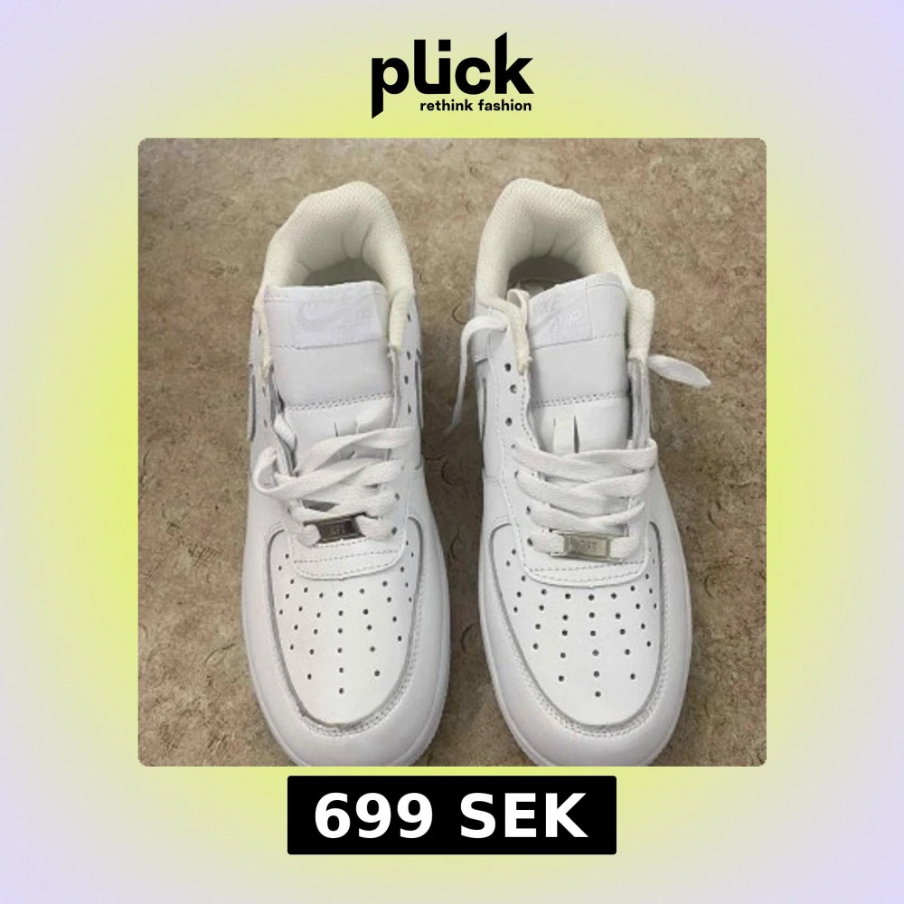 Fräscha Nike Air Force 1 sneakers i helvitt med klassisk låg siluett. Skorna har perforerad tå, snörning med metallbricka och tydlig Nike-logga bak. Tillverkade i skinn med platt sula och rund tå. Perfekta för dig som gillar cleana och stilrena sneakers.