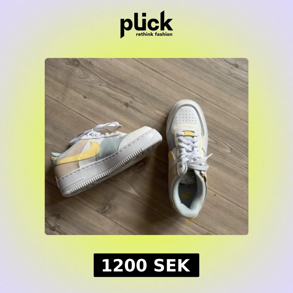 Säljer mina helt nya Nike Air Force 1 sneakers i en mix av pastellfärger med vit, ljusgul och beige paneler. Fick i present men använder ej.