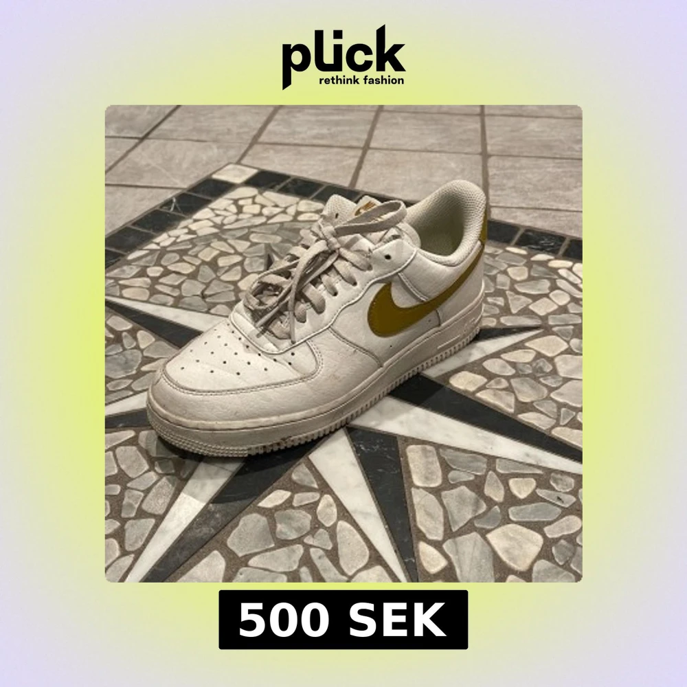 Nike Air Force 1 sneakers i vitt skinn med gröna detaljer och swoosh. Klassisk låg modell med snörning och perforerad tå. Bekväm innersula och robust yttersula. Perfekt för dig som vill sticka ut med en clean men ändå unik look.