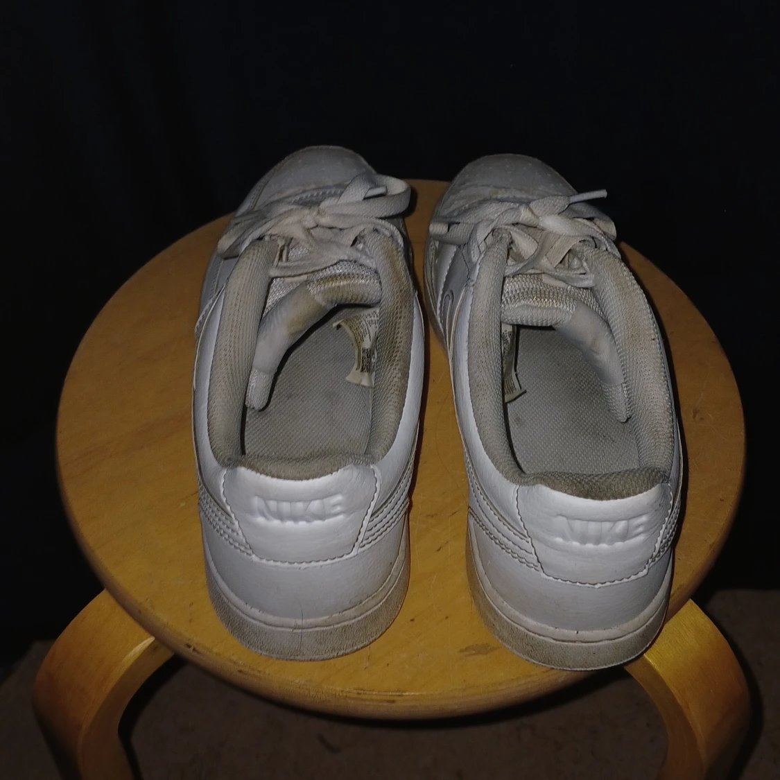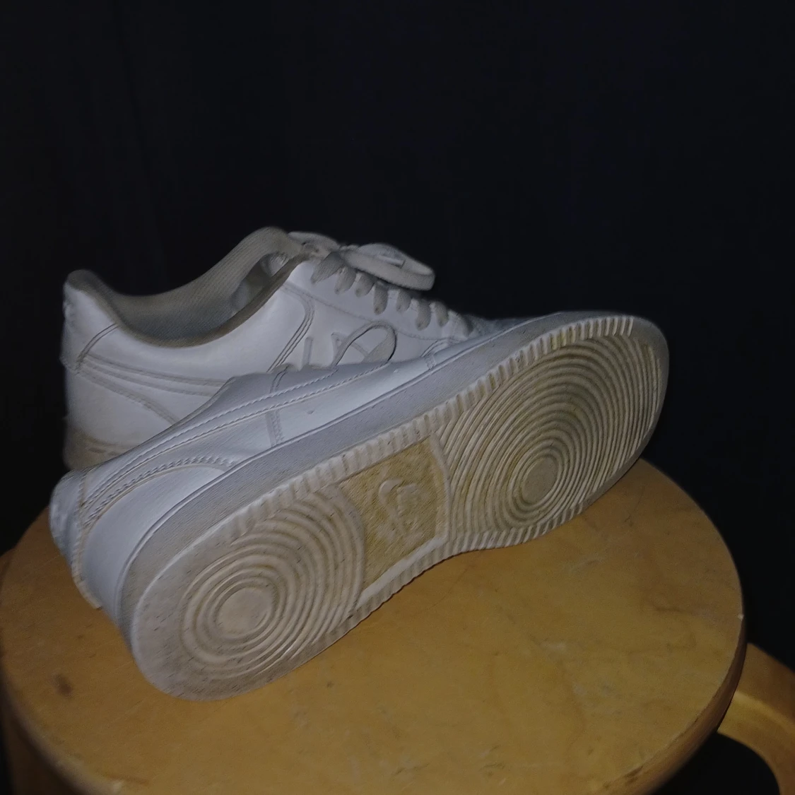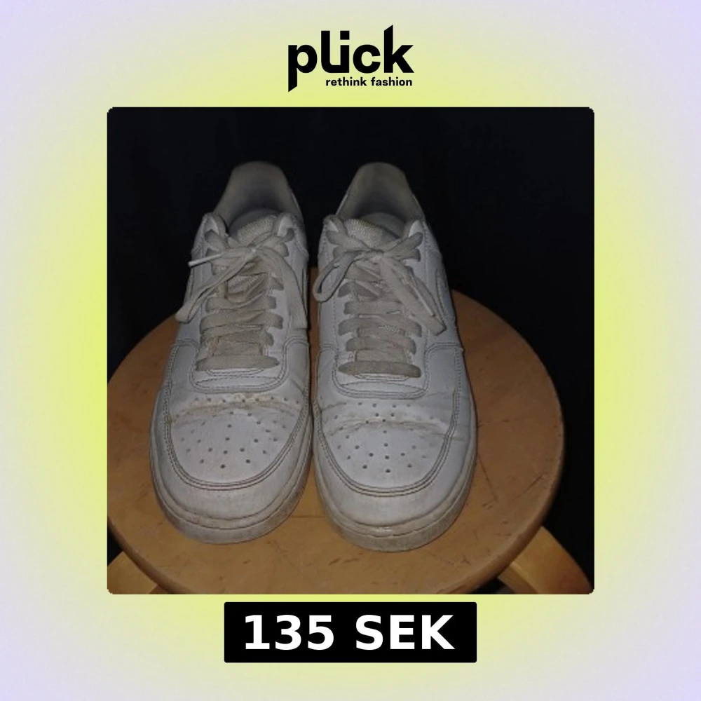Klassiska vita Nike Air Force 1 sneakers i low-modell. Skorna har snörning, rund tå och platt sula. Tillverkade i skinn med diskreta detaljer och Nike-logga bak. Perfekta för dig som gillar en clean och tidlös look.