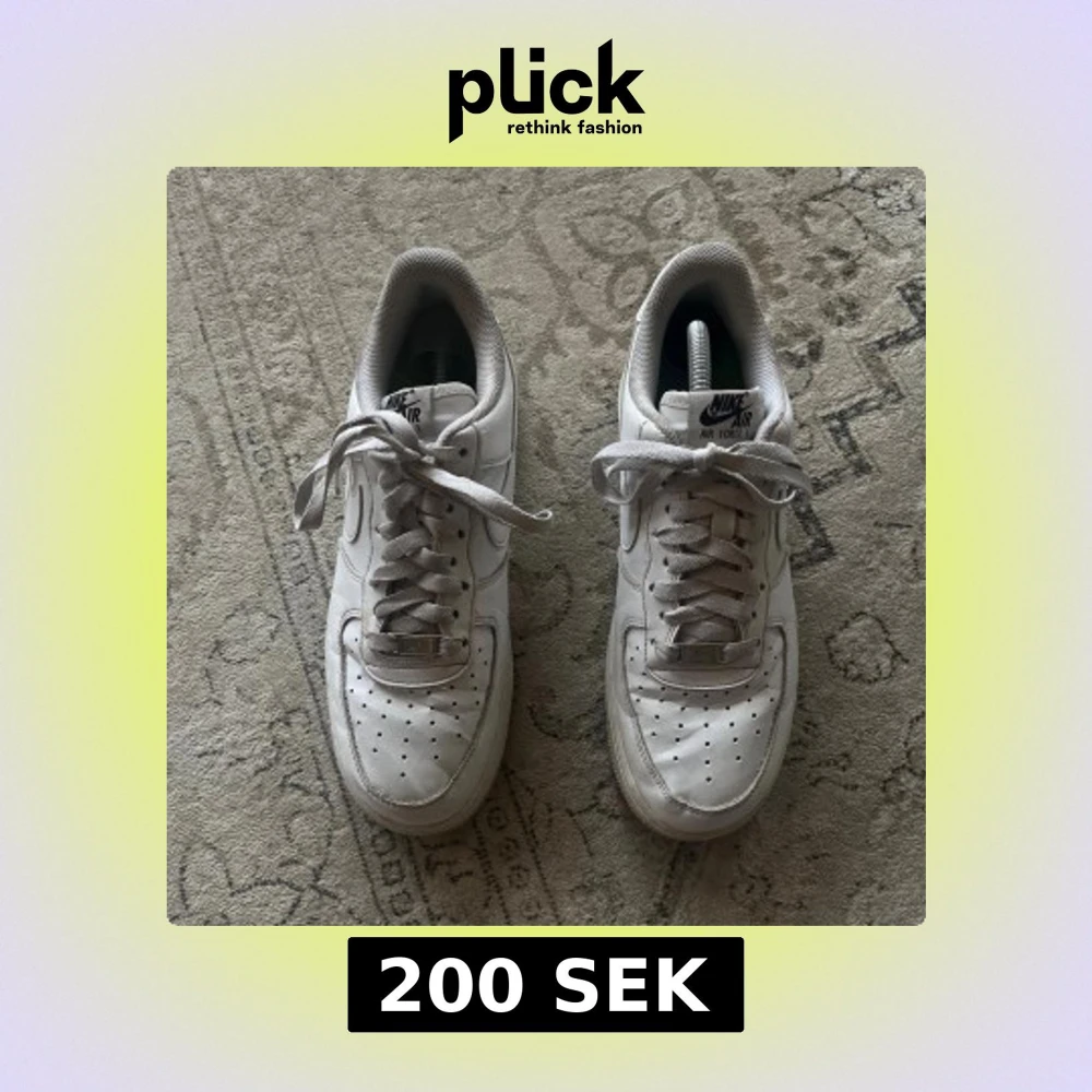 Klassiska Nike Air Force 1 sneakers i helvitt skinn med perforerad tå, rund tå och platt sula. Skorna har snörning och den ikoniska Nike-loggan på sidan och hälen. Perfekt för dig som gillar en clean och tidlös streetstil. Som nya kostar d runt 1000kr så d är ett rätt så bra pris!!