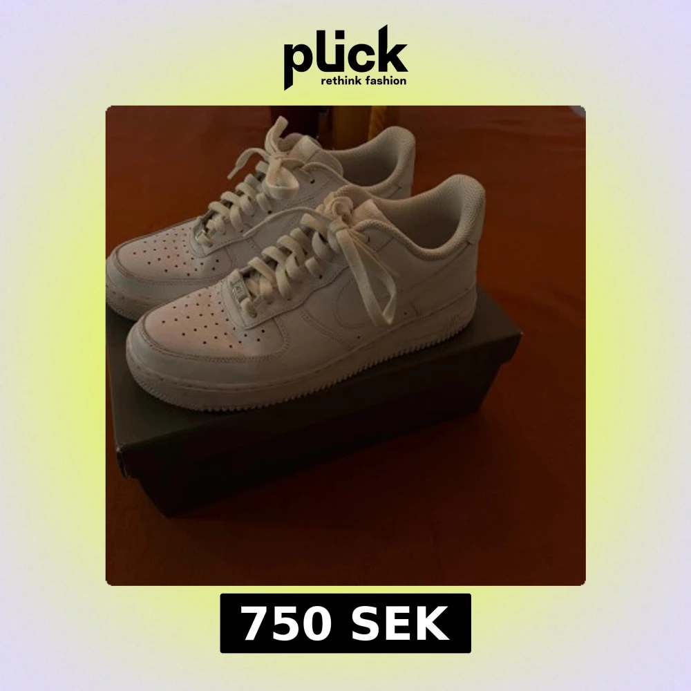 Klassiska Nike Air Force 1 sneakers i helvitt skinn med perforerad tå och platt sula. Snygg och tidlös modell med snörning och diskret Nike-logga på sidan. Perfekta för dig som gillar en clean och sportig look.