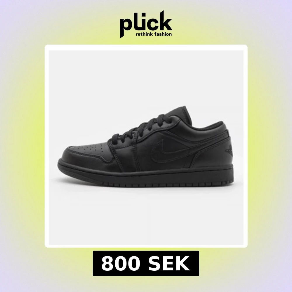Säljer ett par helsvarta Nike Air Jordan 1 Low med klassisk siluett och snygga detaljer. Skorna har snörning, rund tå och är tillverkade i skinn med en platt sula. Perfekta för dig som gillar stilrena sneakers. Köpta för ca 1300kr säljer för 800kr HELT NYA OCH OANVÄNDA, kan tänka mig byte mot helt NYA Air force 1 i storlek 39.