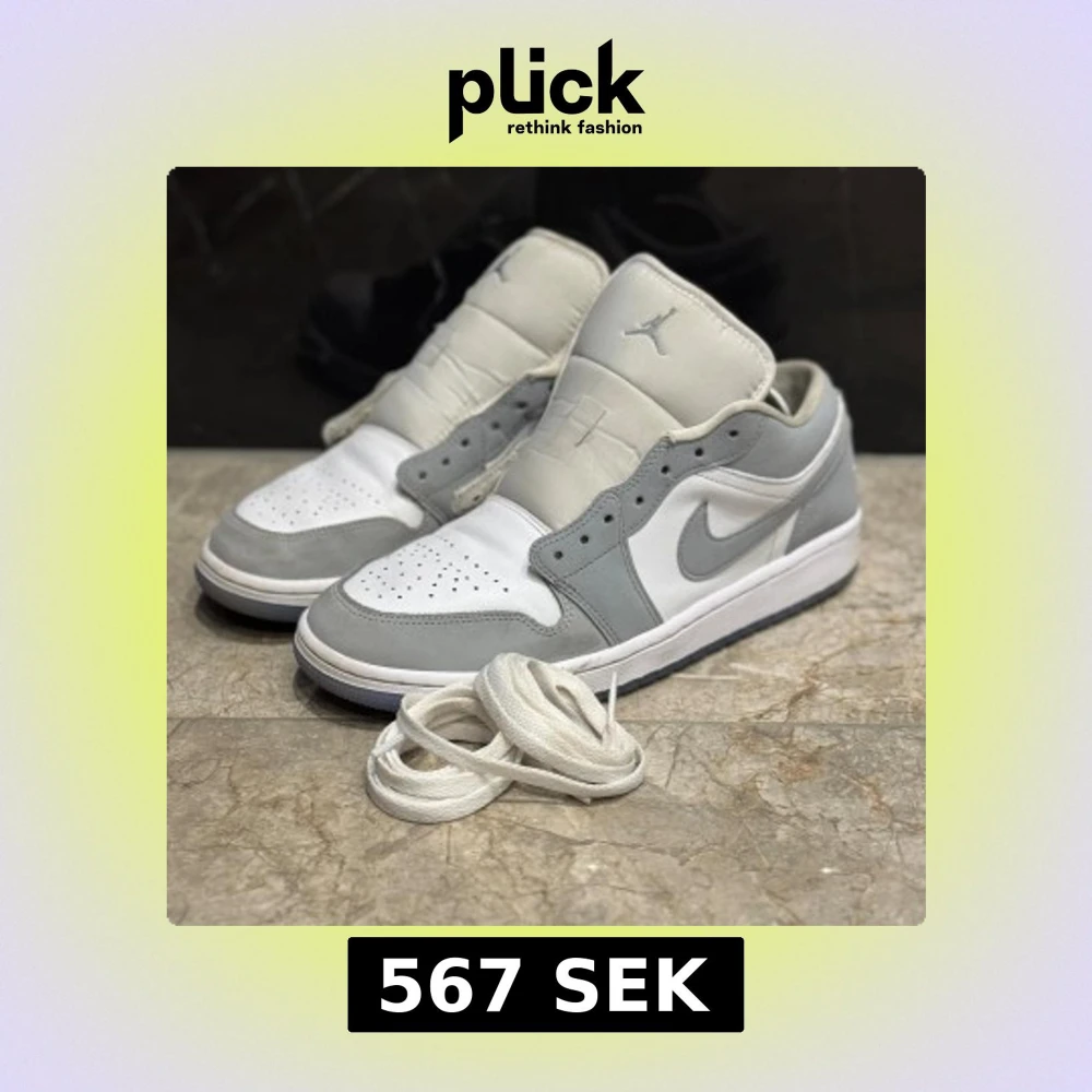 Säljer ett par Nike Air Jordan 1 Low Wolf gray som är en väldigt snygg sko. Fick dom i present i somras men jag använde dem typ 10 gånger på sin höjd så vill bara bli av med dom. Köpta för 2899kr men säljer för ett väldigt billig päng 567 kr skriv vid funderingar !!!