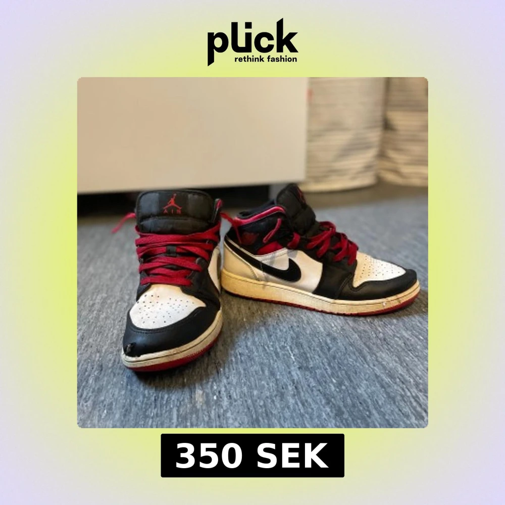 Jordan 1 i storlek 39 lite trasiga längst fram. Snygga skor och enkla att matcha