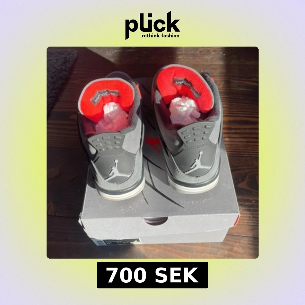 Nike Air Jordan 4 Retro sneakers i grått med svarta och röda detaljer. Skorna har meshpaneler, snörning och Jumpman-logga på hälen och plösen. Snygg kontrast mellan den mörkgrå mockan och de röda accenterna. Platt sula med synlig Air-enhet för extra komfort.