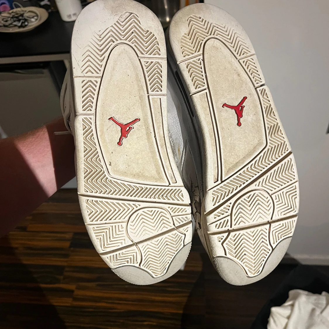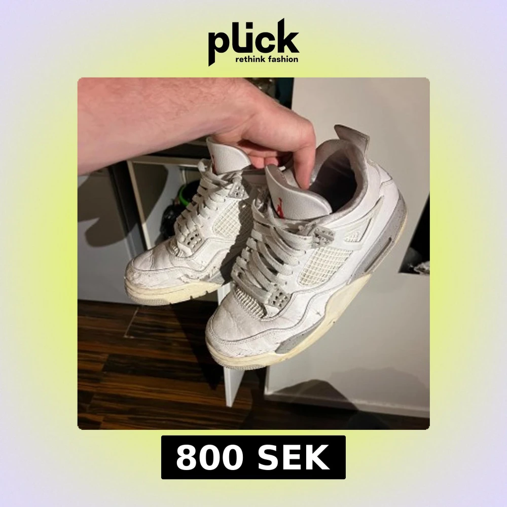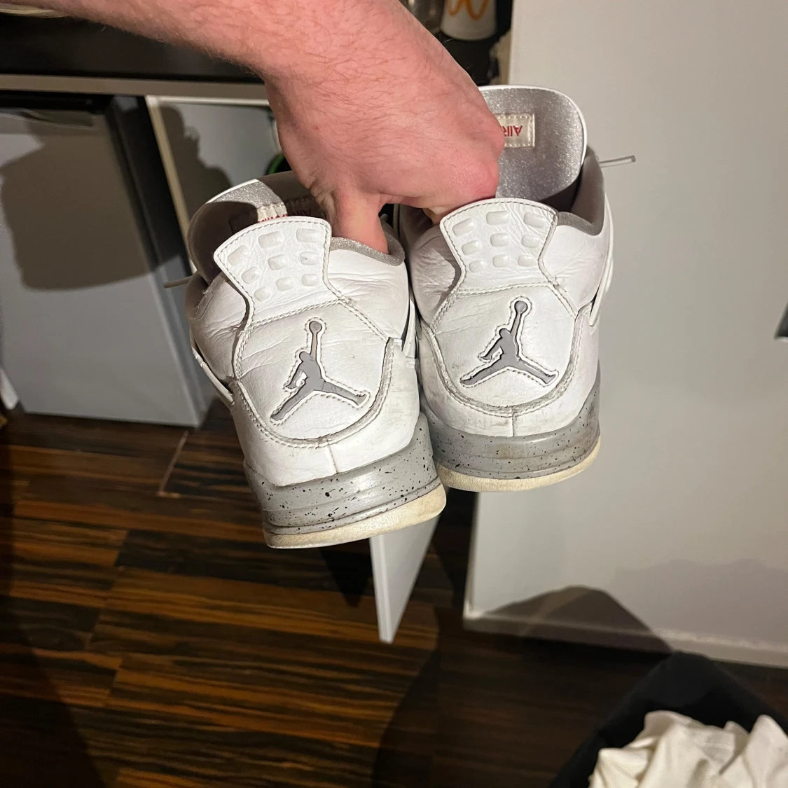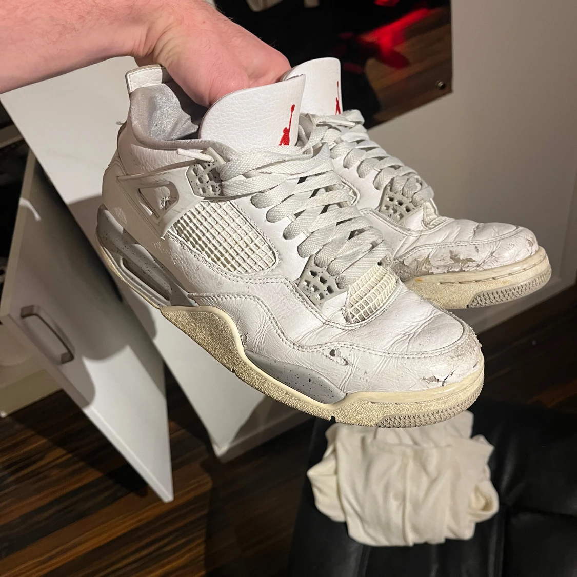 Säljer ett par Nike Air Jordan 4 Retro white Oreo storlek 44! Cond 5/10, går att fräscha upp och fina till de, inga större skador utan bara yttre lagret färg på vissa ställen och creasade. Runt 6000 nypris på dessa! Riktig feta skor om man putsar upp de!
