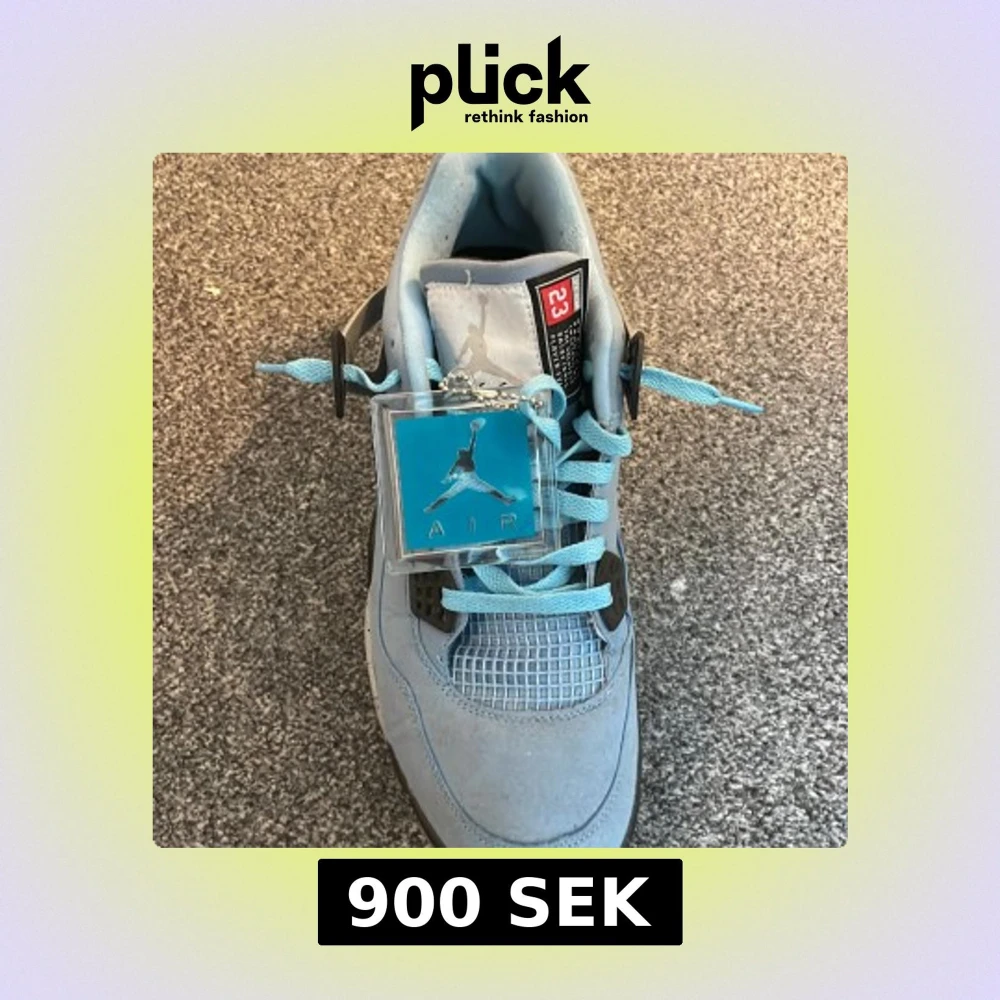 Nike Air Jordan 4 University Blue med ljusblå mocka, svarta och grå detaljer samt specklad mellansula.Bra kvalité .Skriv vid funderingar ☺️går att diskutera pris vid snabb affär.