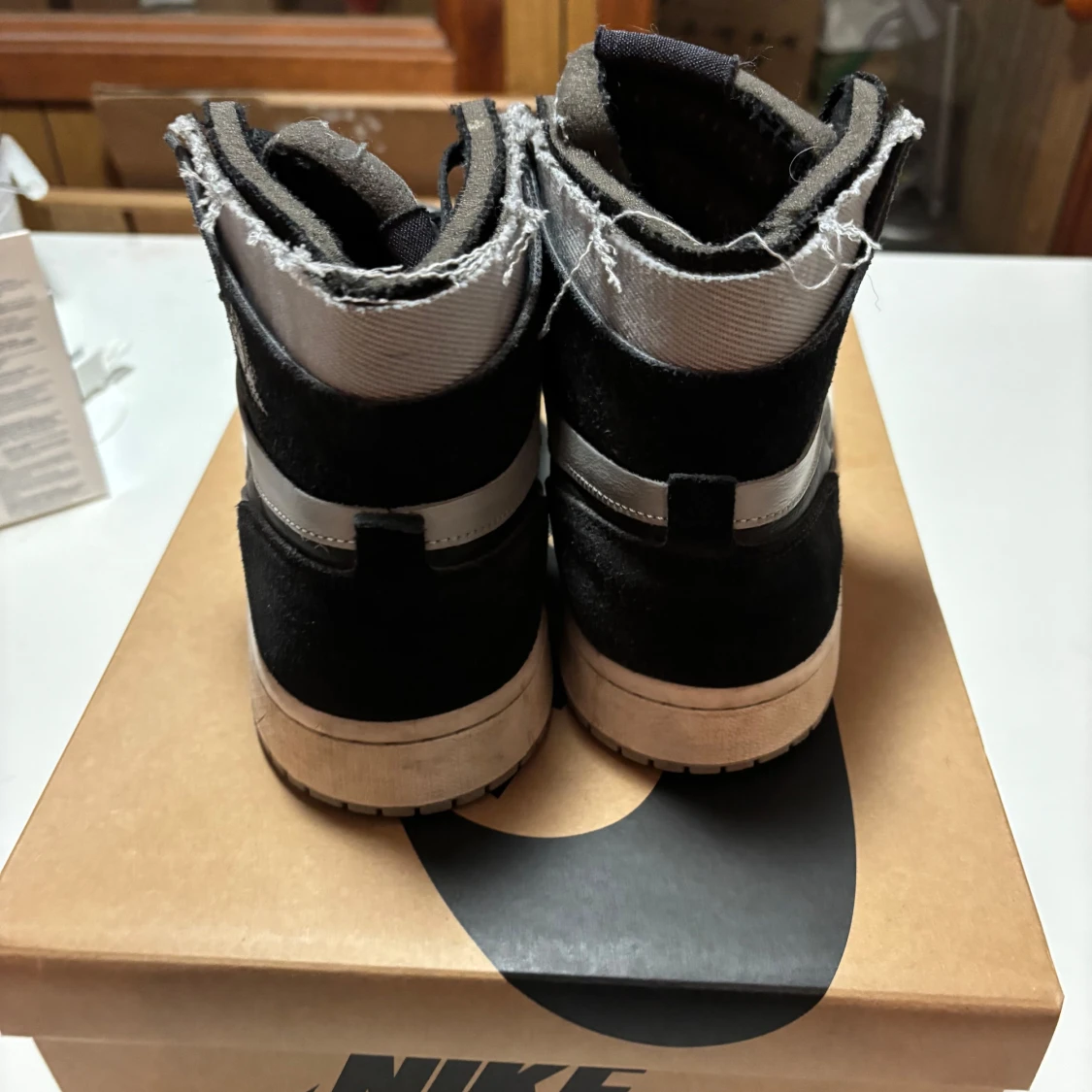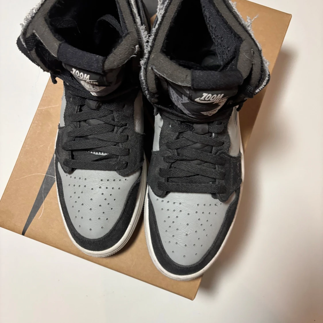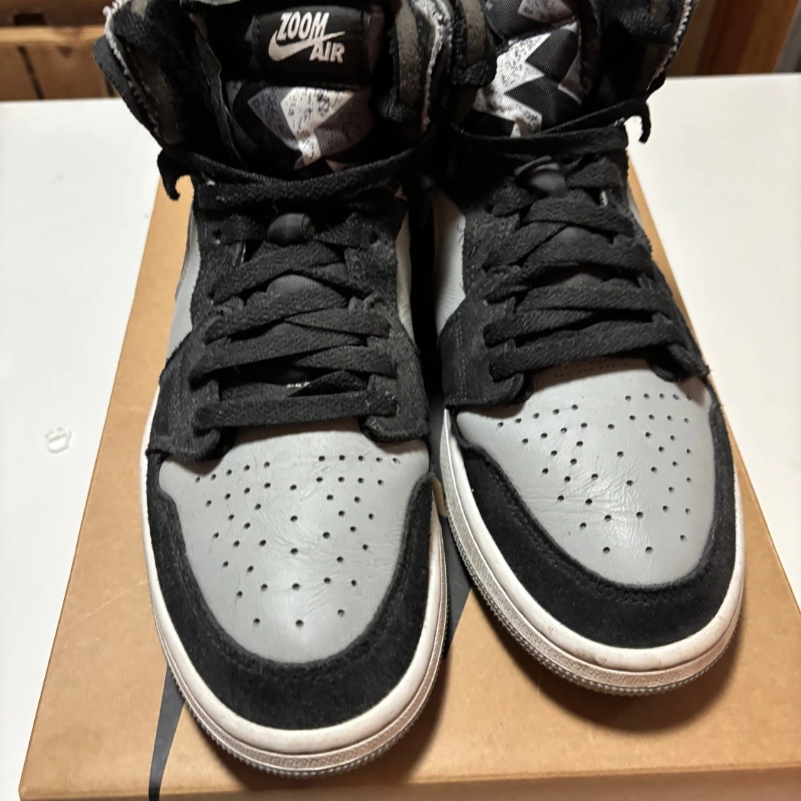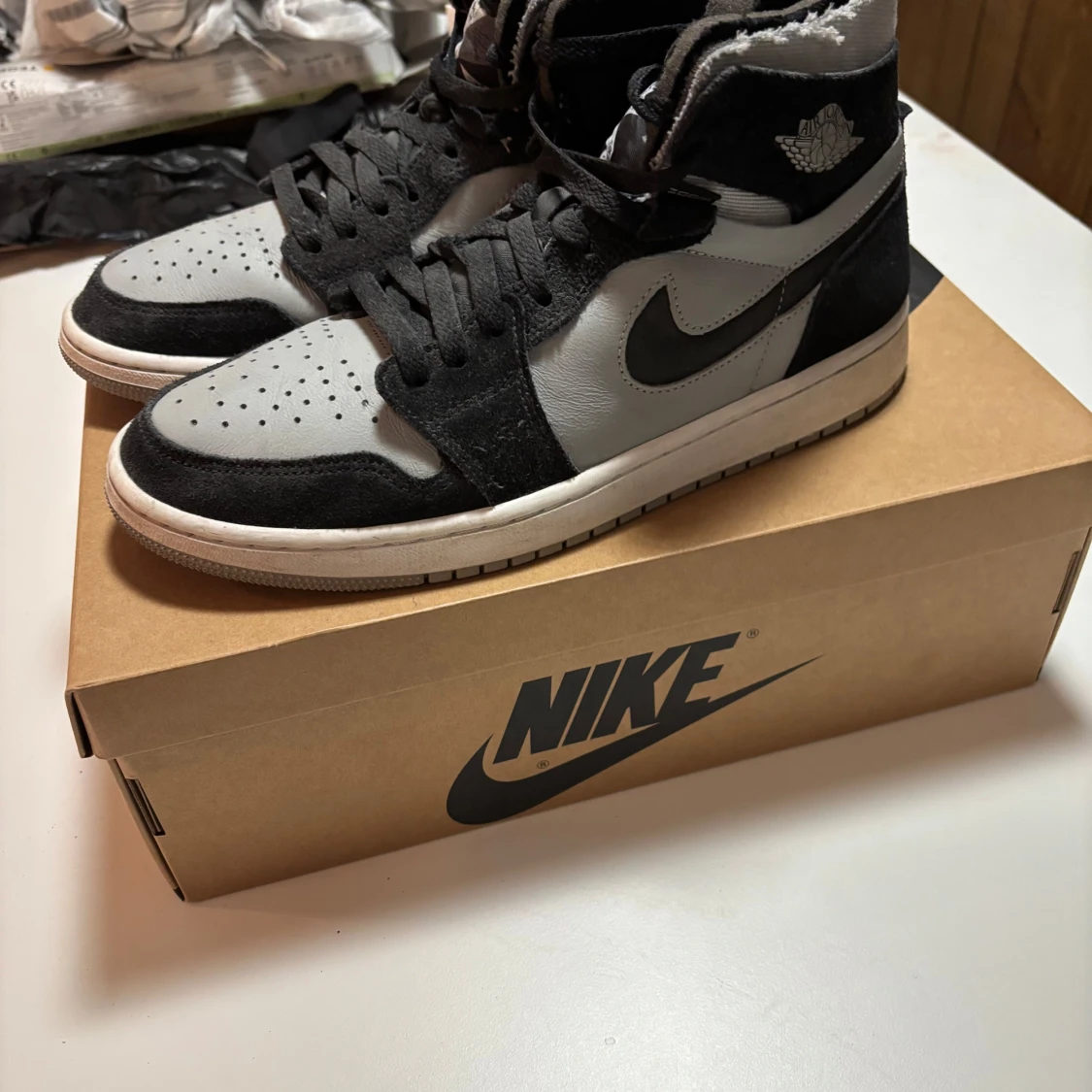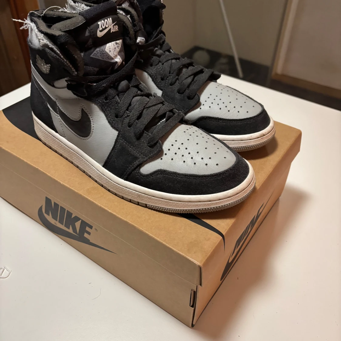 Snygga Nike Air Jordans i en stilren kombination av svart och grått. Skorna är i ganska gott skick. Hör av er vid frågor och intresse🤗
