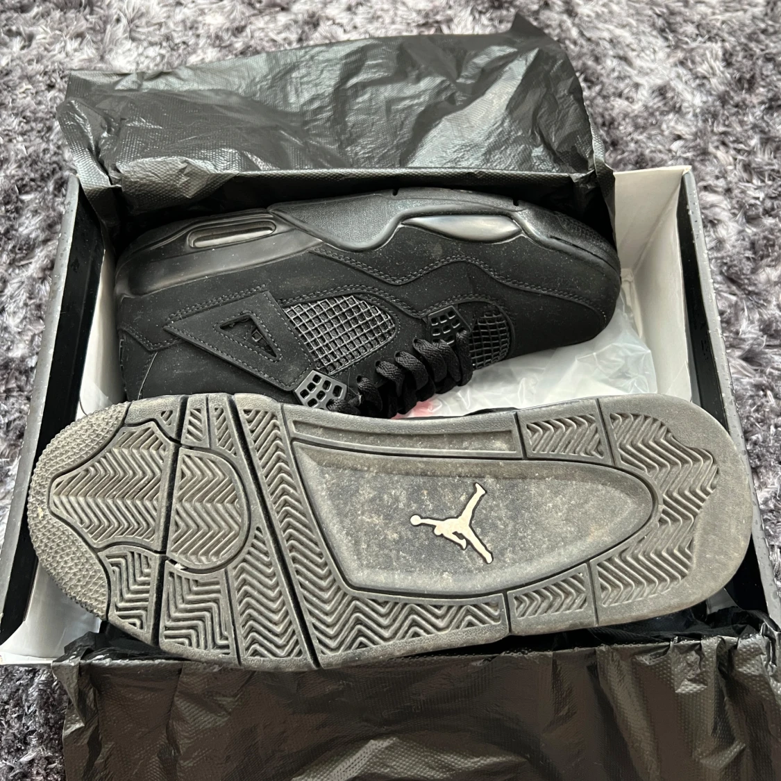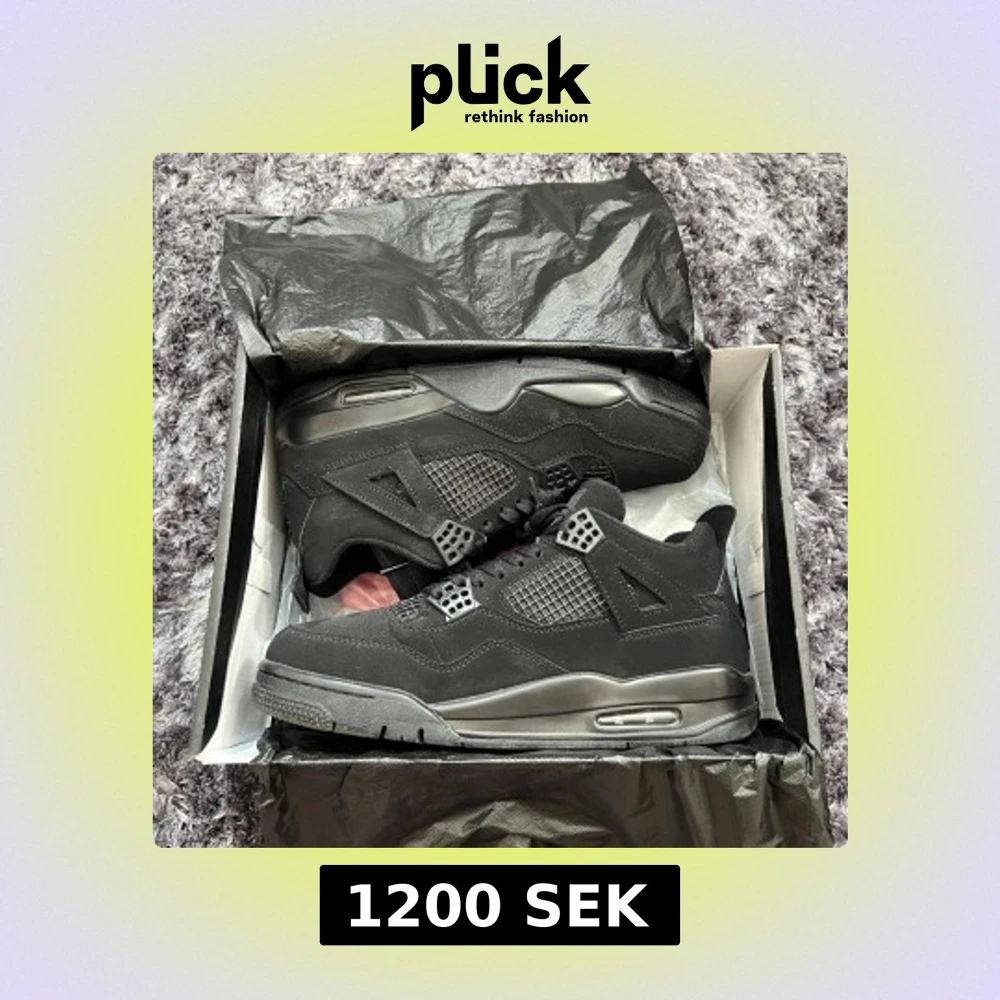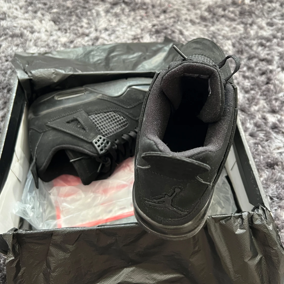 Pris kan diskuteras vid snabb affär! Säljer ett par nya helsvarta Nike Air Jordans 4 Retro med snygga detaljer och klassisk siluett. Skorna har snörning, meshpaneler på sidorna och synlig luftdämpning i sulan. Perfekta för dig som gillar streetwear och vill ha en ikonisk sneaker i garderoben. Obs, använd endast 1 gång!