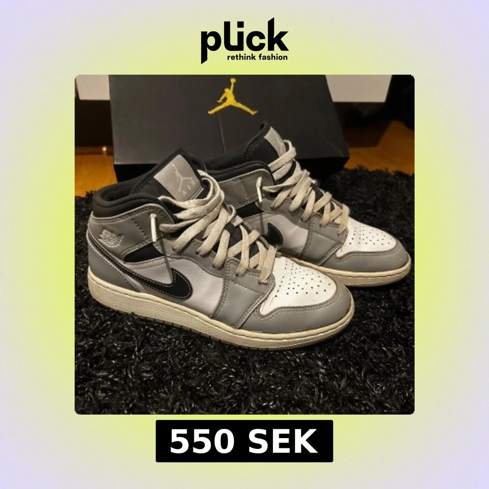 Snygga Nike Air Jordans i grått och svart med klassisk design. Köpte dom för någon sommar sen på Merch Sweden och har knappt använt dom så vill därför nu bli av med dom. Priset är satt därför jag vill bli av med de fort!
