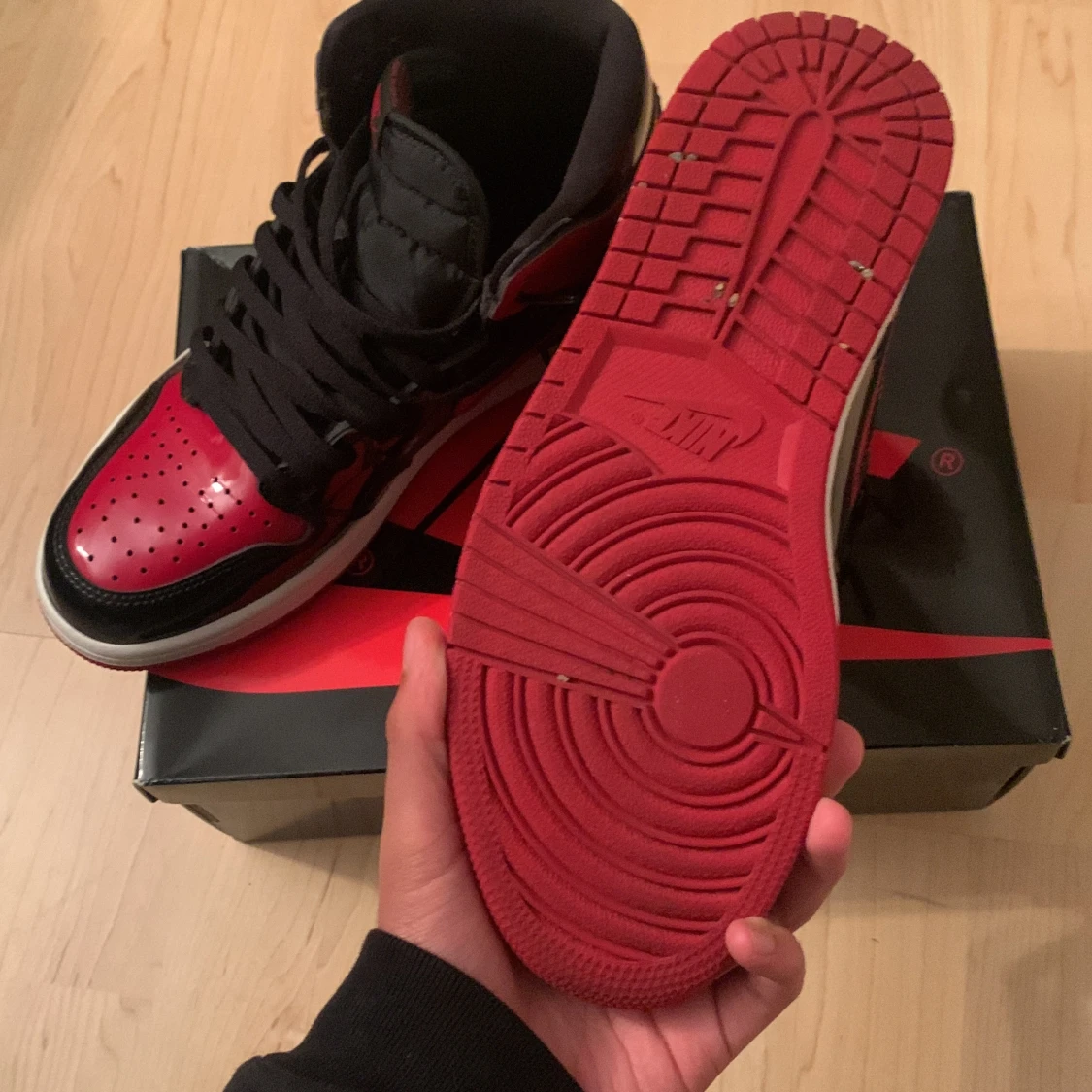 Nike Air Jordans i svart och röd