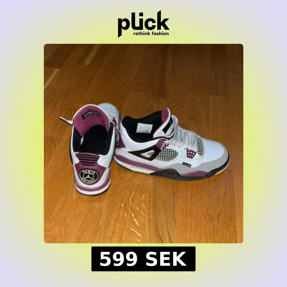 Snygga Nike Air Jordans i samarbete med Paris Saint-Germain. Skorna är vita med vinröda och svarta detaljer samt PSG-logga på hälen. De har snörning och en luftig mesh-design på ovansidan.