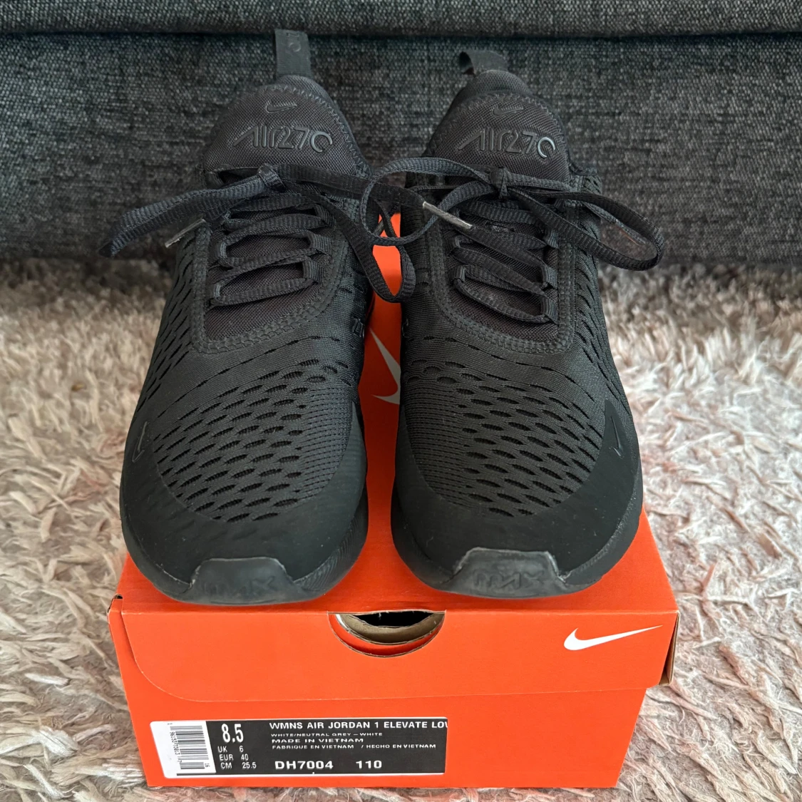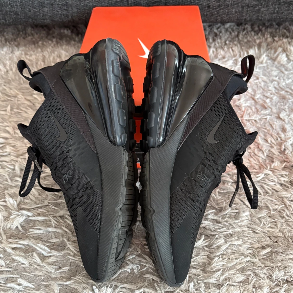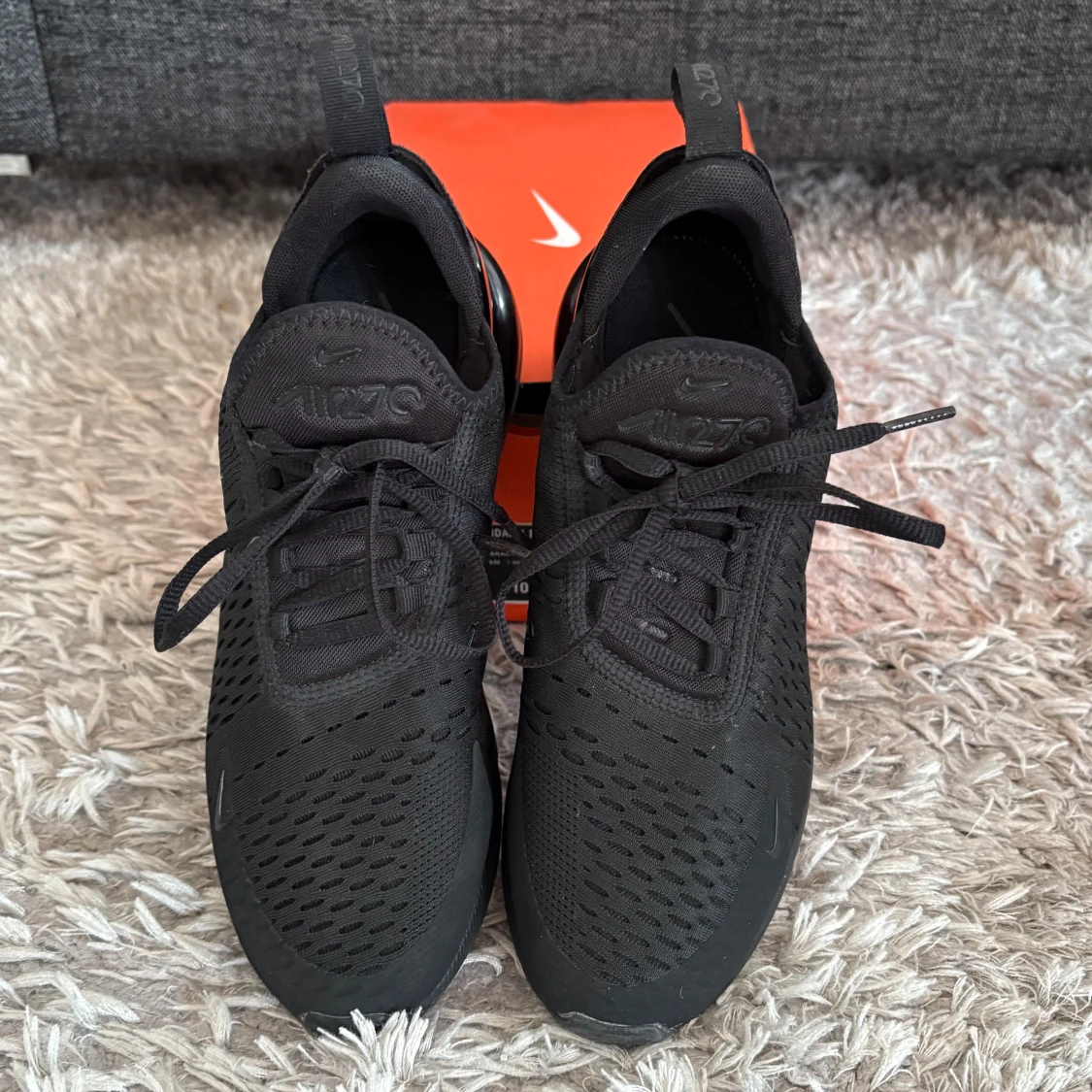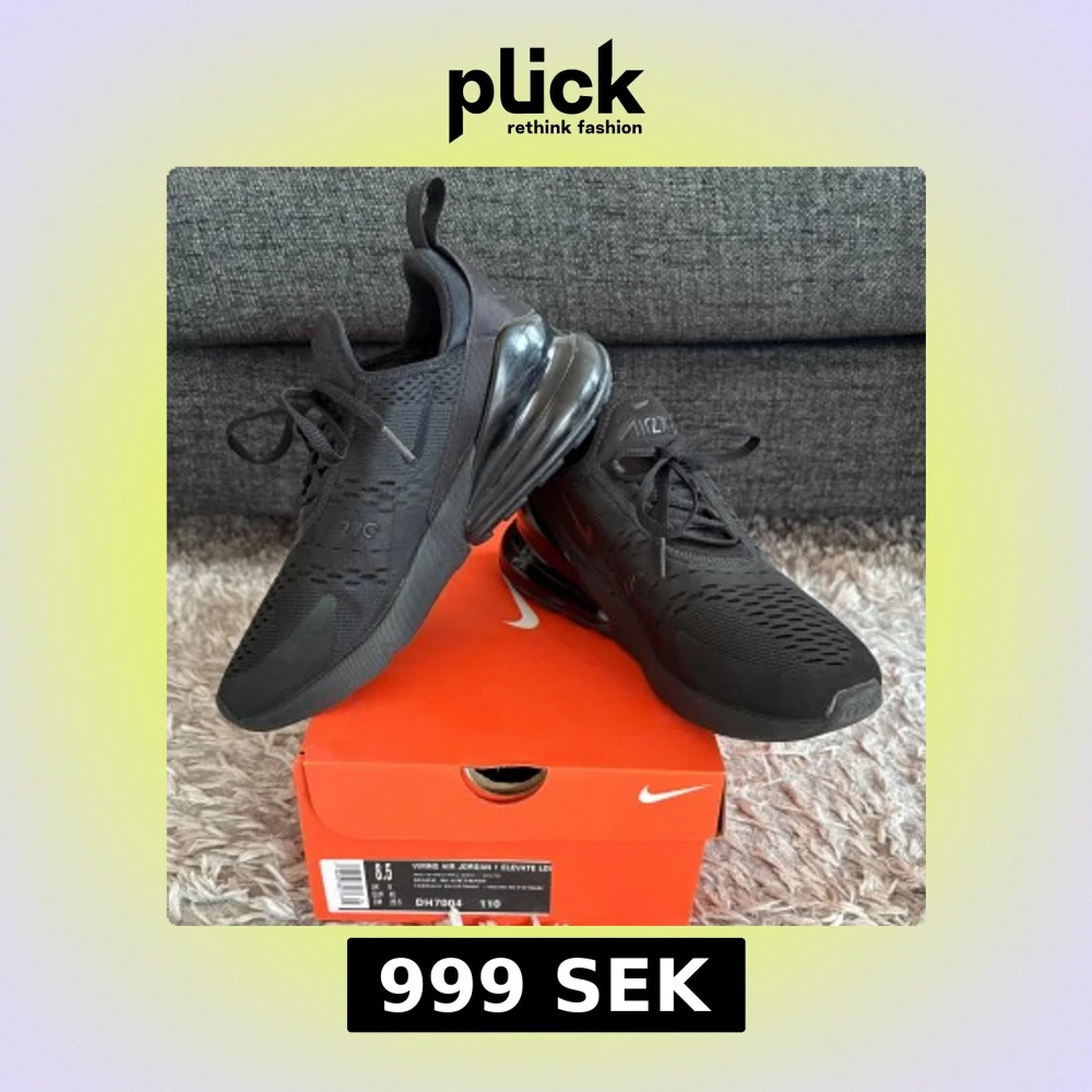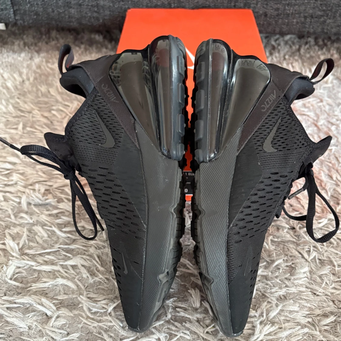 Säljer ett par helsvarta Nike Air Max 270 i absolut nyskick! Skorna har mesh-överdel för bra andningsförmåga och klassisk snörning. Perfekta för dig som gillar en sportig och stilren look. Nypris 1 799 kr