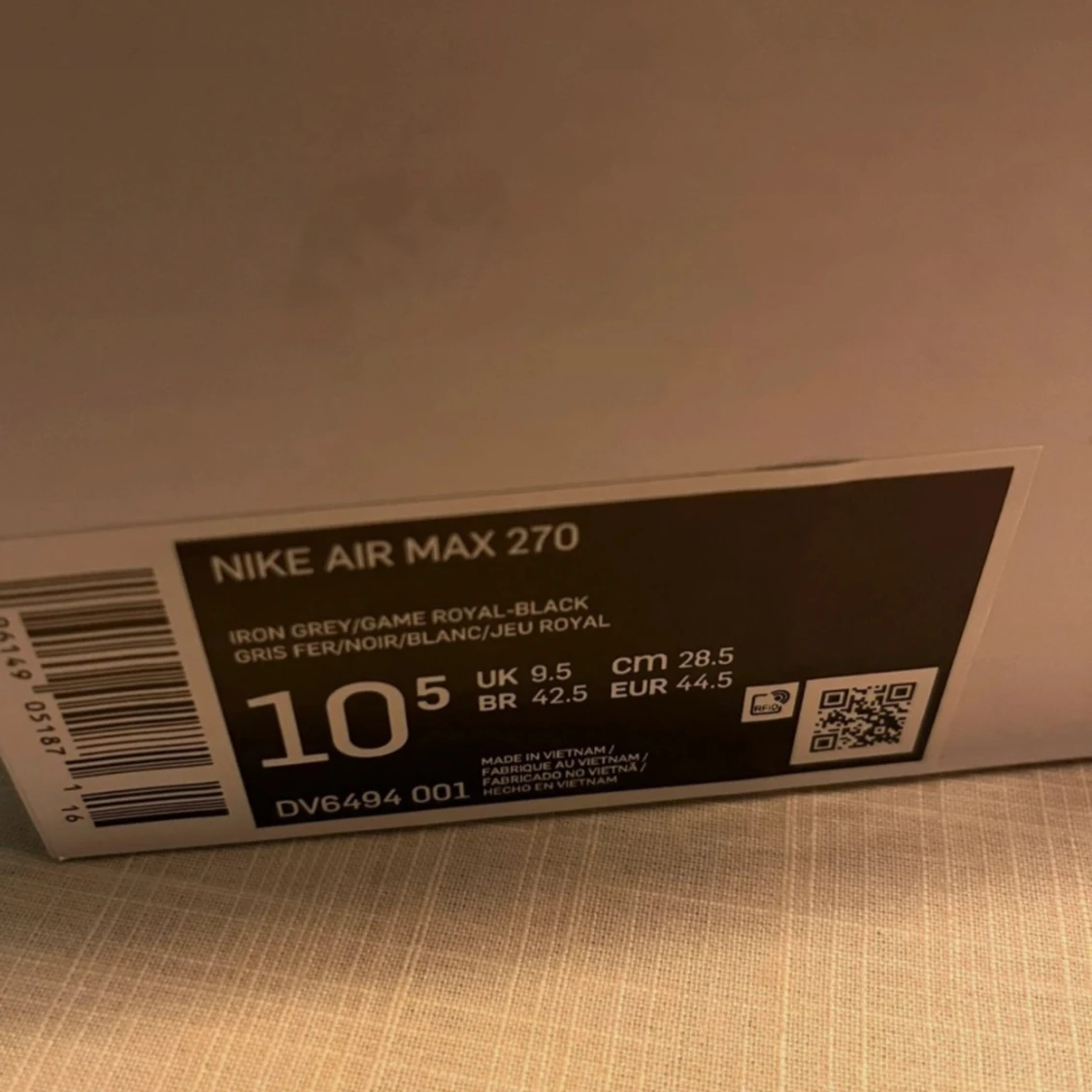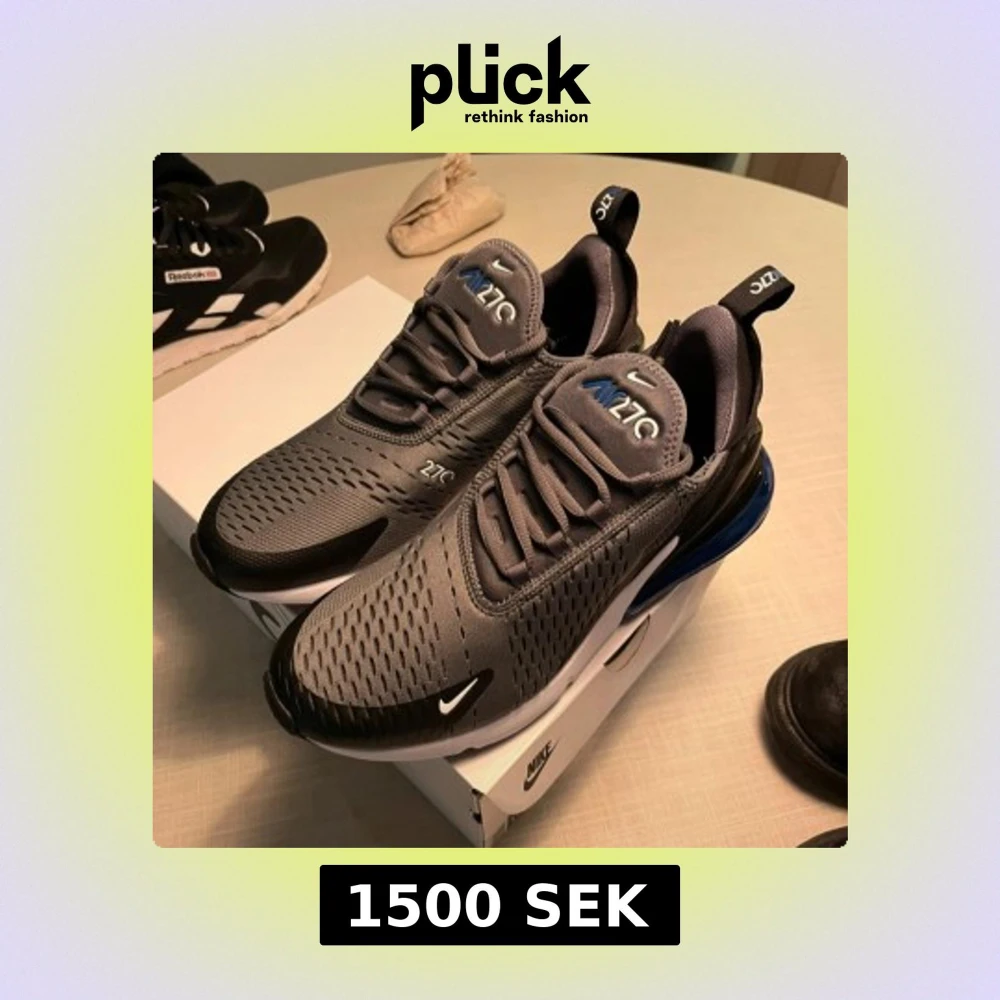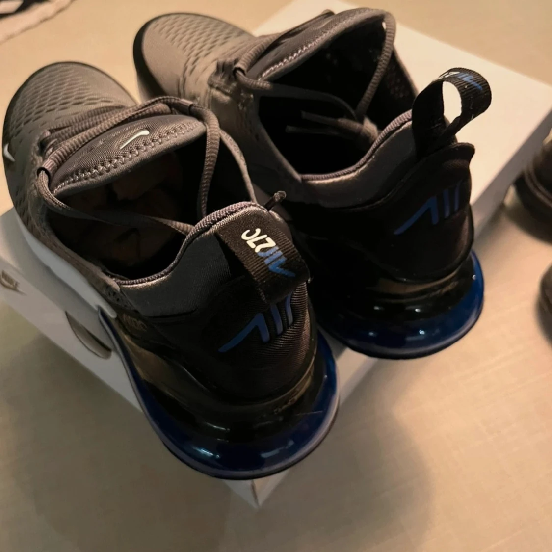 Orginal Nike Air Max 270 i färgen Iron Grey/Game Royal-Black. Snygga sneakers med ventilerande mesh, svarta och blå detaljer samt stor synlig Air-enhet i hälen. Klassisk Nike-logga och 270-tryck på sidan. Perfekta för dig som gillar sportig och modern stil. Aldrig använda.