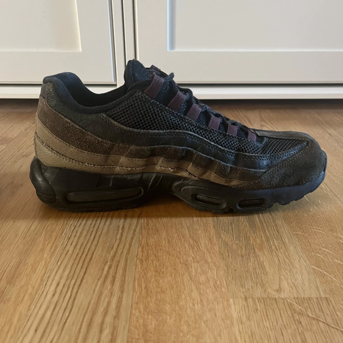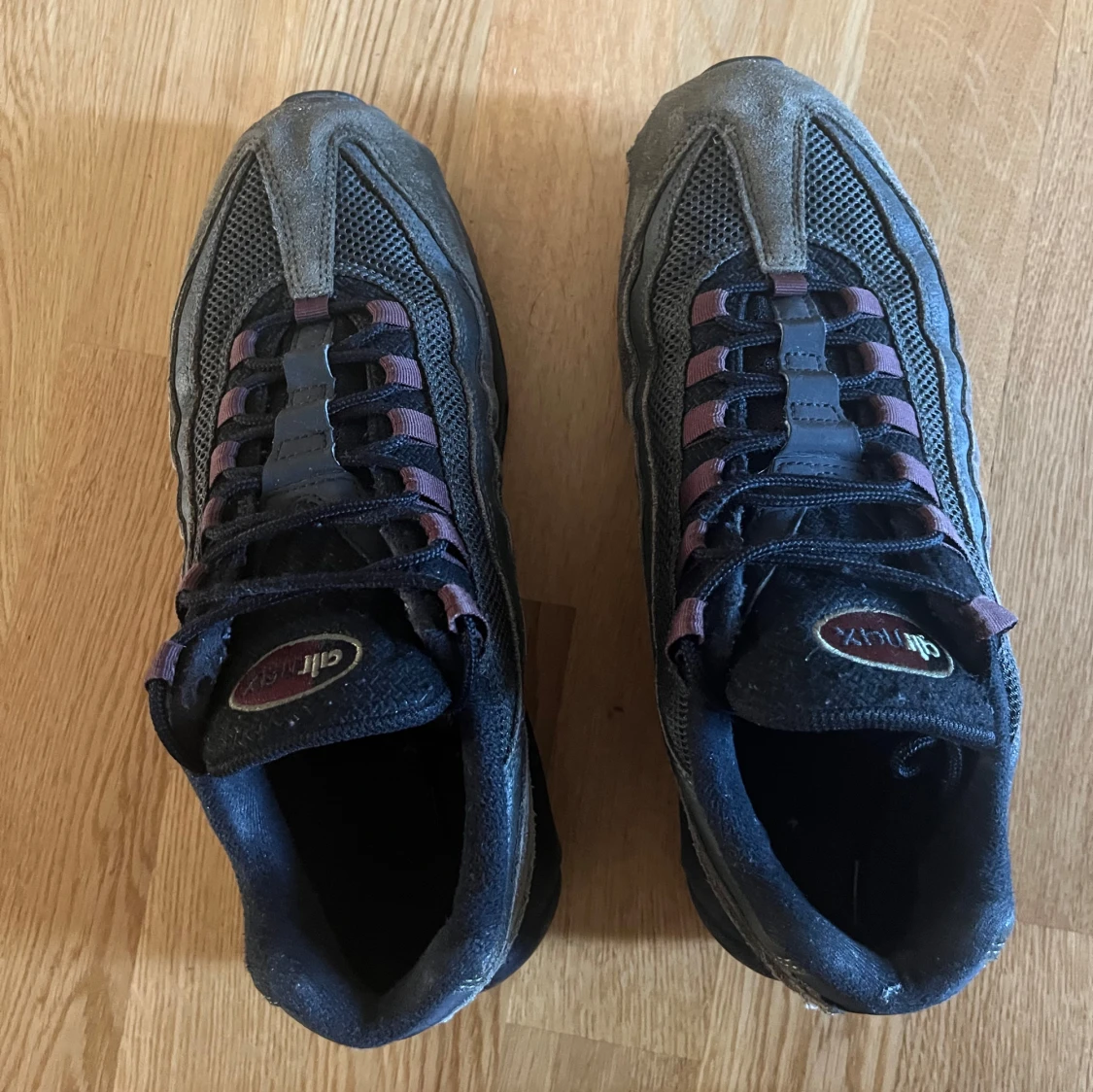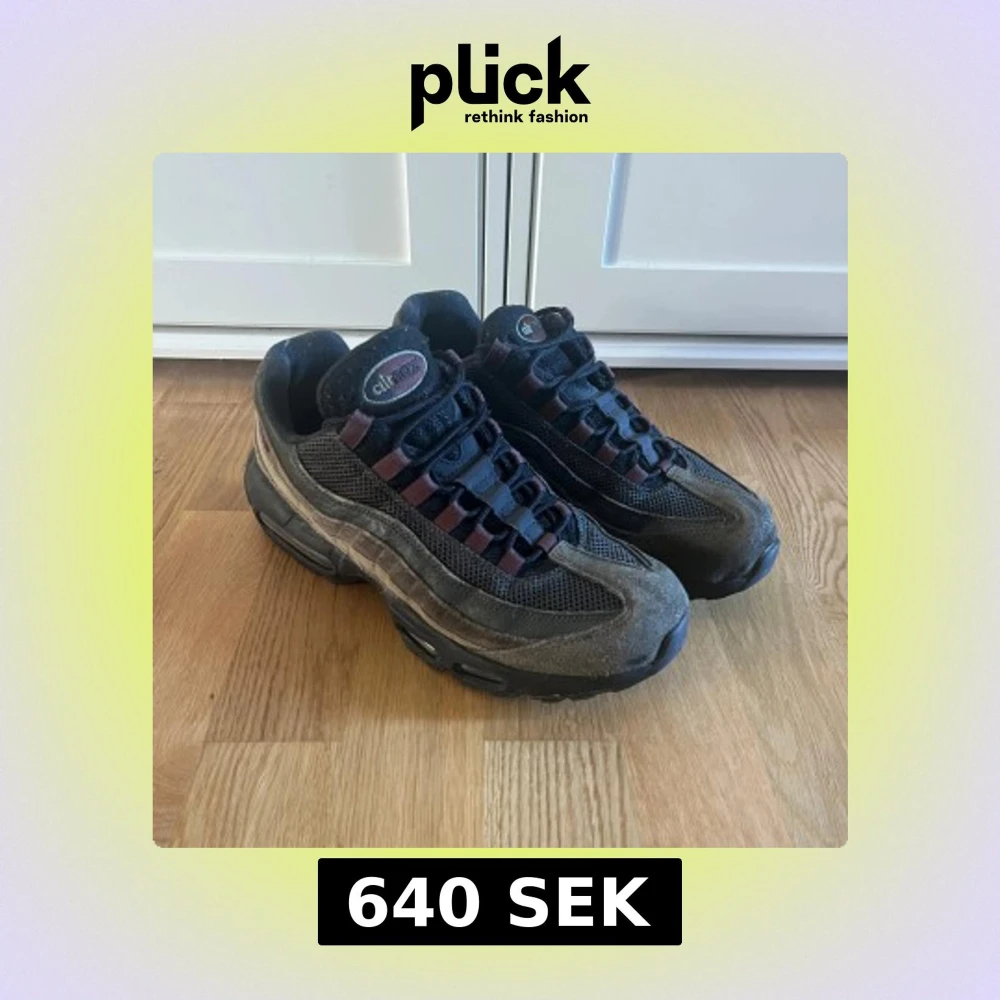Nike Air Max 95 sneakers i olika nyanser av grönt, grått och svart. Perfekta för dig som gillar retro vibes och streetstyle. Använda en del men fortfarande bra skick, förutom ett litet hål på höger sko som knappt syns vid användning, skriv vid bilder! Nypris runt 2000kr, köpta på footlocker i Stockholm. Pris går att diskutera!