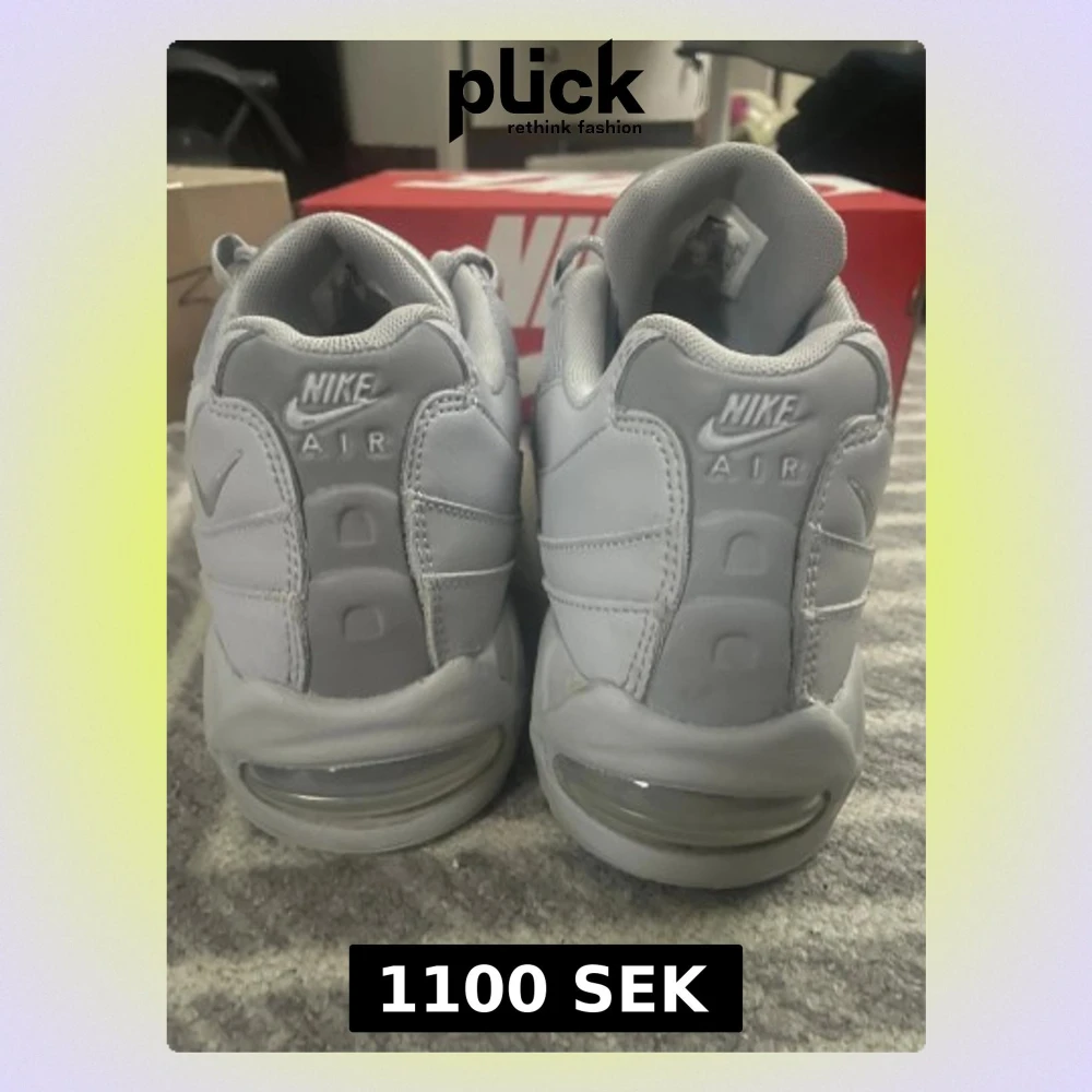 Nike Air Max 95 sneakers i ljusgrå färg med synliga Air-enheter i sulan. Ovandelen är en mix av mesh och syntetmaterial med vågiga paneler och snörning. Snygg, chunky siluett och platt sula som ger en sportig vibe. Perfekt för dig som gillar klassiska streetwear-skor.PRIS KAN DISKUTERAS.KÖPTE DE FÖR 2200KR har använt de lite.
