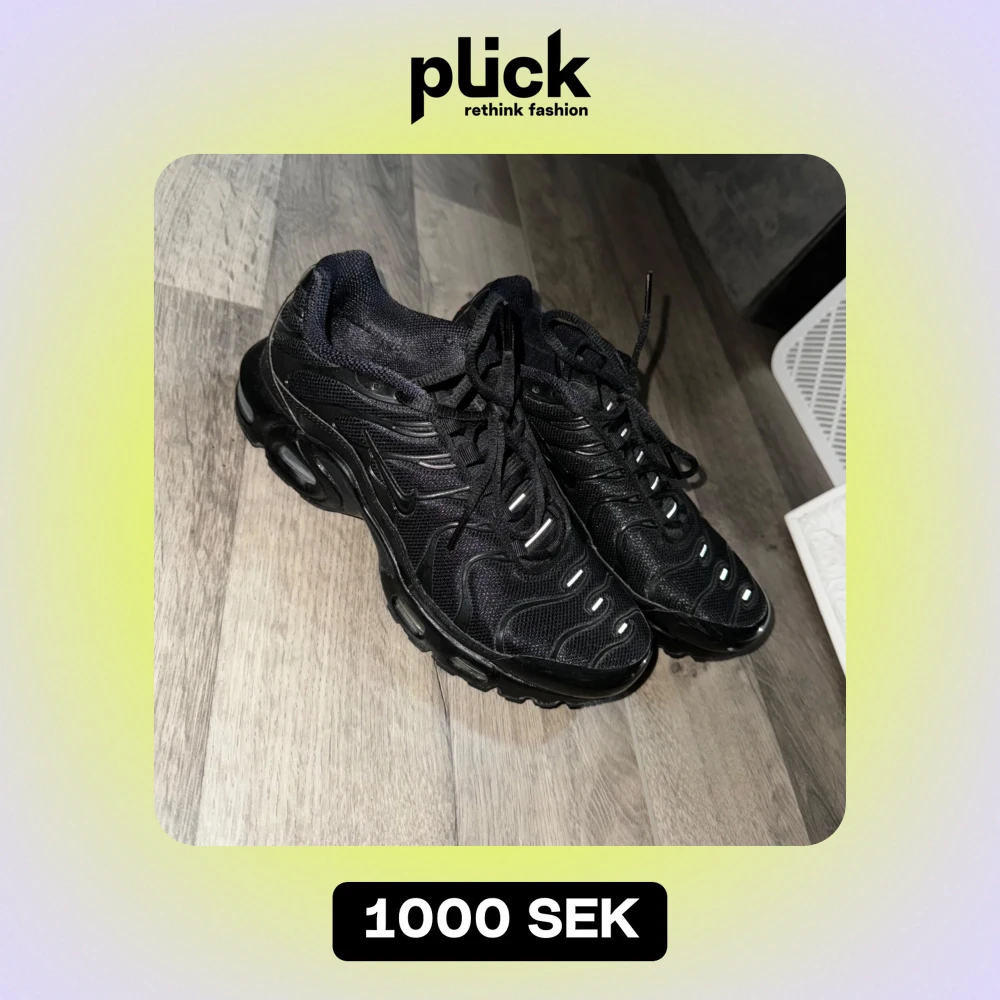 Ett par svarta Nike air Max plus i storlek 39/24,5 cm. Är använda två gånger men kände att det inte passade mig. Nypris 1799kr mitt pris 1000kr.